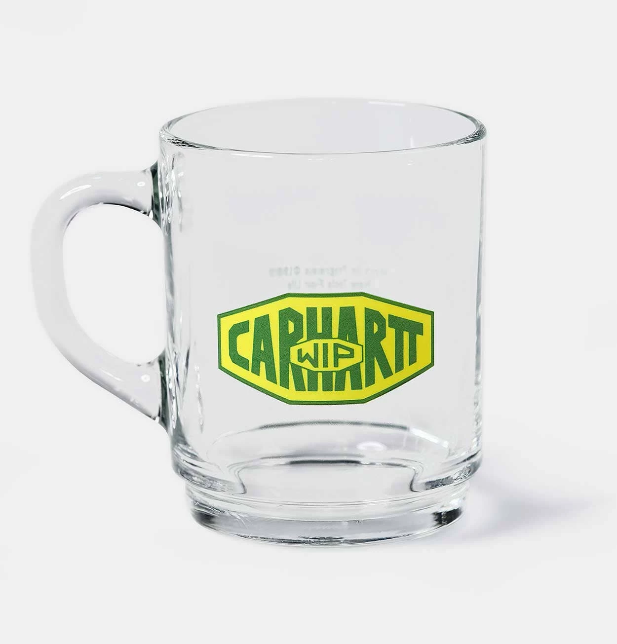 The Carhartt WIP New Tools glass mug is perfect for everything from a morning coffee to cold weekend beer. Dishwasher safe.