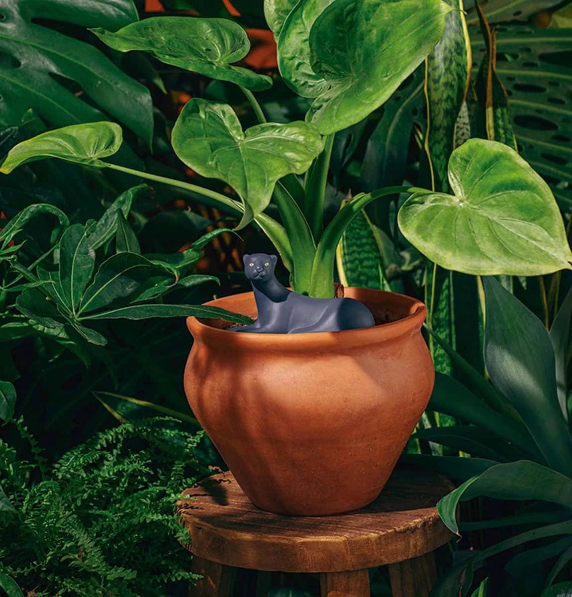 Never leave your plants without water again. This self-watering system shaped in the form of a panther waters your plants for you over the course of a couple days through its porous material.