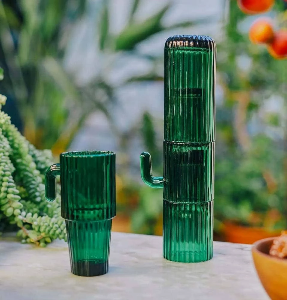 A set of 4 long drink glasses shaped as a cacti, that suit any beverage.