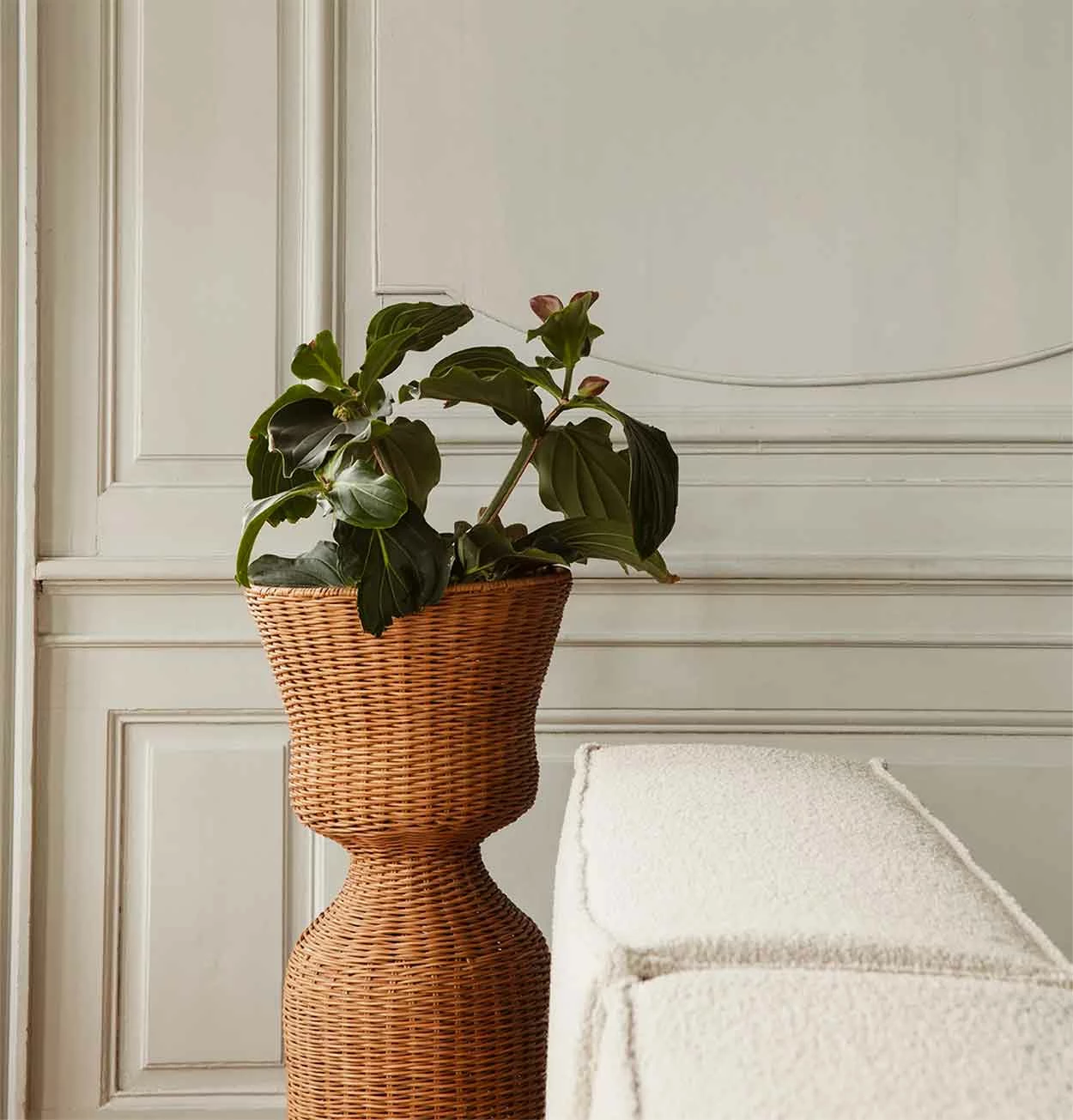 Serving as a decorative way to elevate and display favourite plants, the Agnes Plant Stand is designed as a pedestal, which instantly brings character and tactility to any room. The Plant Stand is braided by hand, made from natural rattan with an iron structure that lends the artful container a unique, crafted expression.