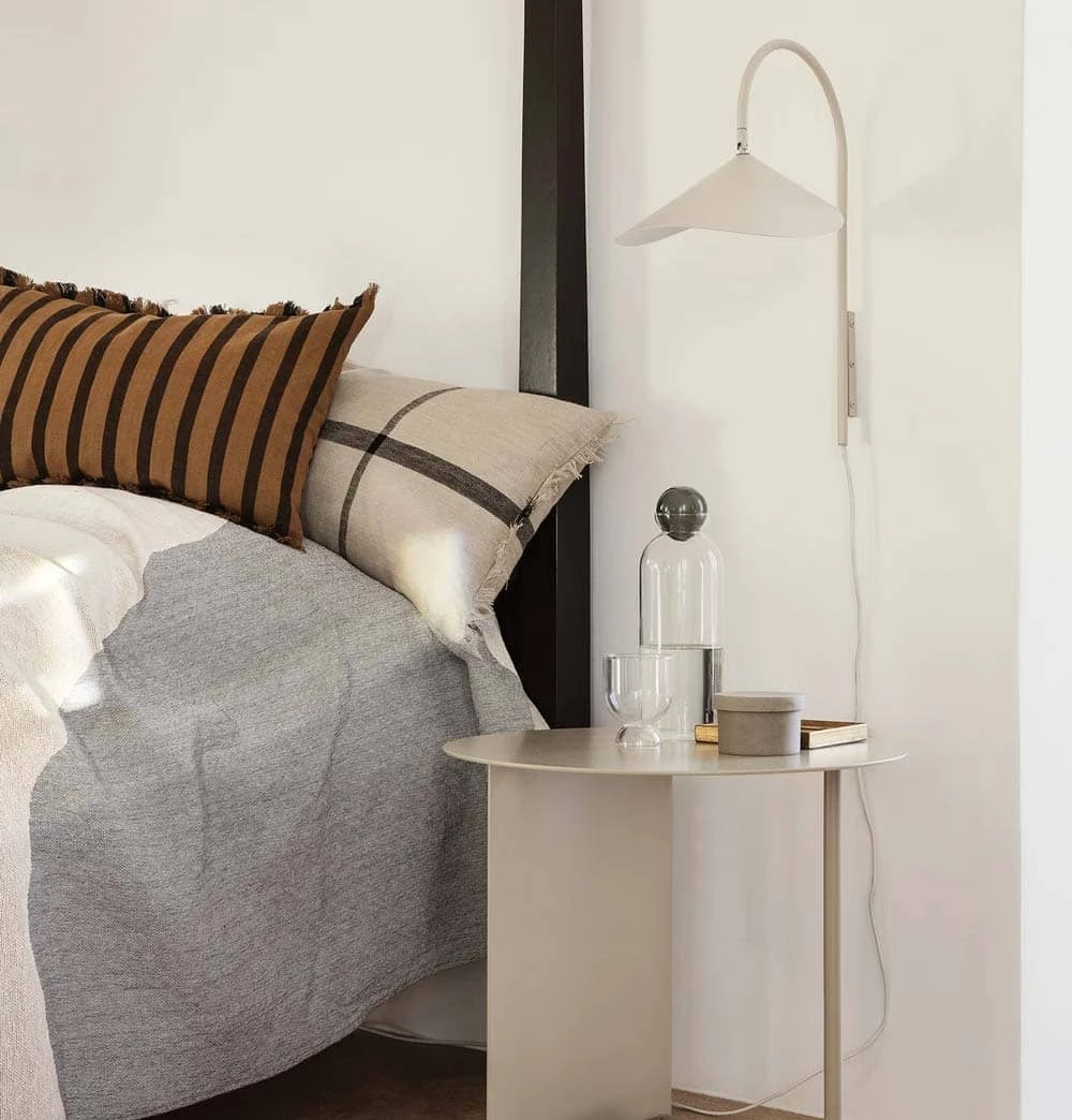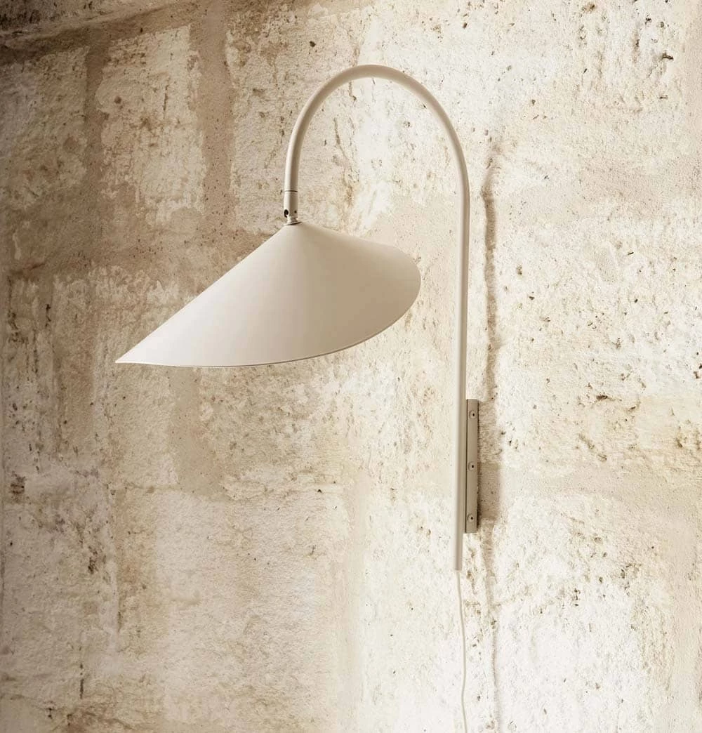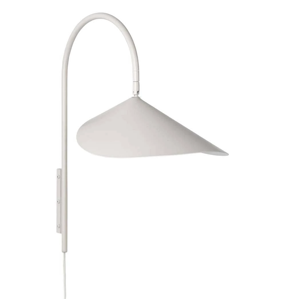 The Arum Wall Lamp is characterised by the organically shaped shade suspended from curved metal arch in a leaf-like manner. With the matte, off-white inside of the shade, the lamp provides a soft, evenly distributed light, and the lampshade can be adjusted to ensure optimal light conditions in all situations. The lamp is delivered with a wall bracket, so it is easy to mount on a wall.