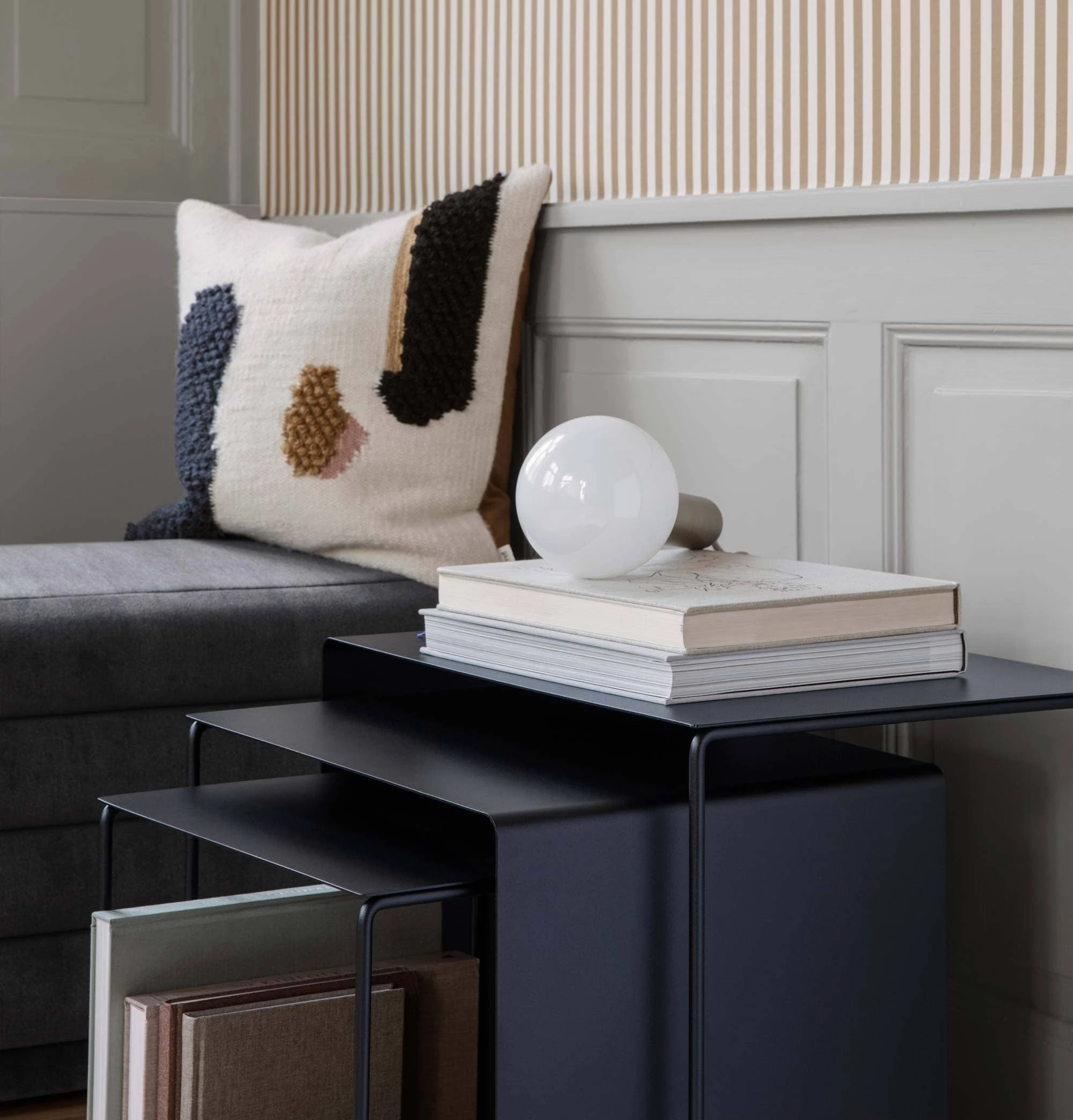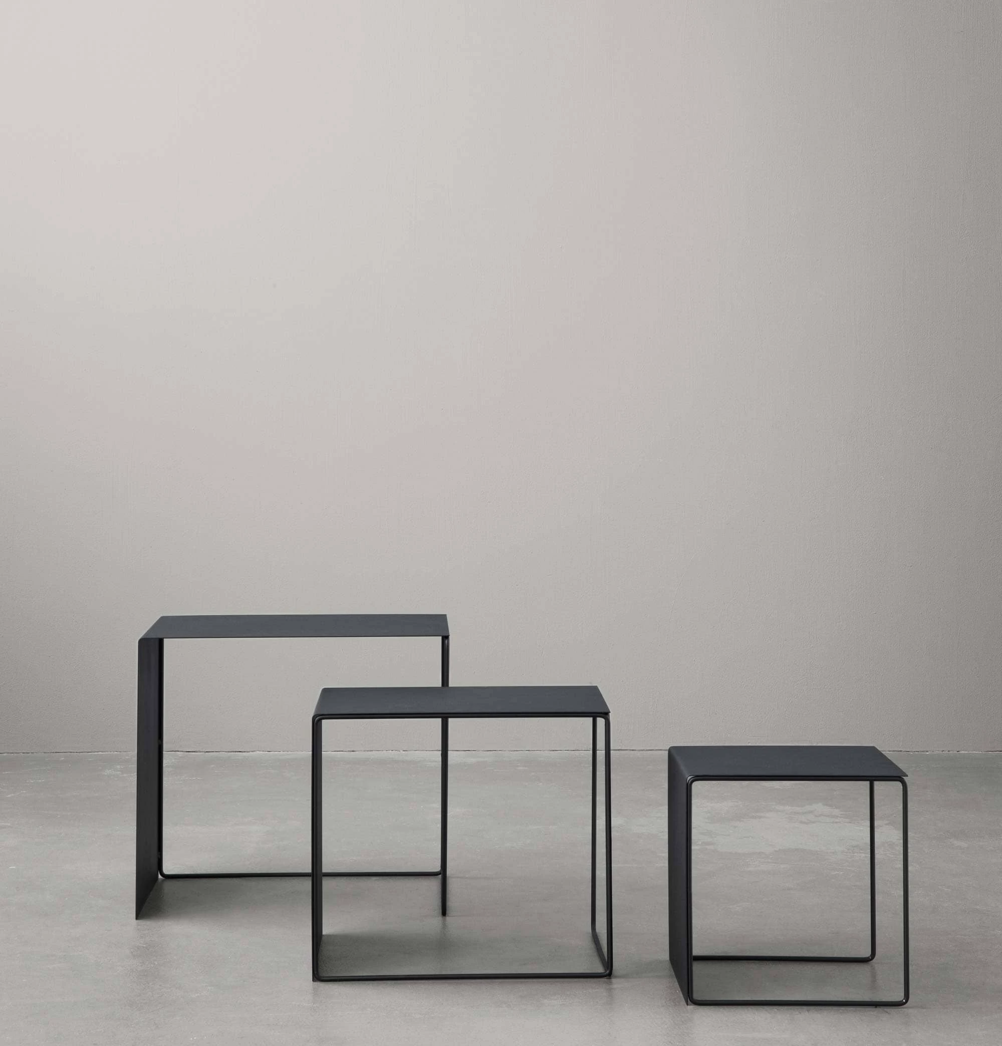 Straight lines and square shapes meet in the contrast between the delicate and thin metal legs and the solid surfaces, in a minimalistic and timeless design. Clean and stylish whether you choose to use the 3 tables nested together, freestanding in a group or placed separately in different rooms of the house. Made in powder coated metal the tables are relatively light – not only in their look, but also in the sense that you can easily move them around and play with the many combinations we have built into the design.