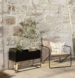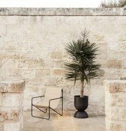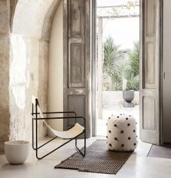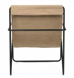 A Modernist chair with a graceful profile, Desert Chair is crafted from a tubular powder-coated steel frame in colours Black or Cashmere, holding an interchangeable woven textile seat made from recycled plastic bottles.