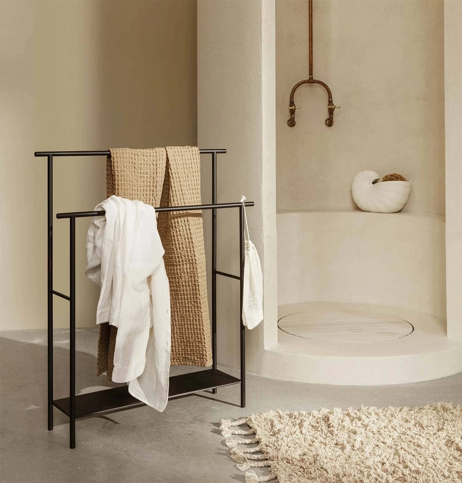 Originally consisting of just the Dora Clothes Stand, the Dora family has expanded to include a series of freestanding furnishings that are ideal for bathroom. Made from powder-coated metal, the simple yet functional designs are rust-resistant, so are ideal for use in damp conditions. The Dora Towel Stand allows you to hang several towels at once, as well as providing you with extra storage space below.