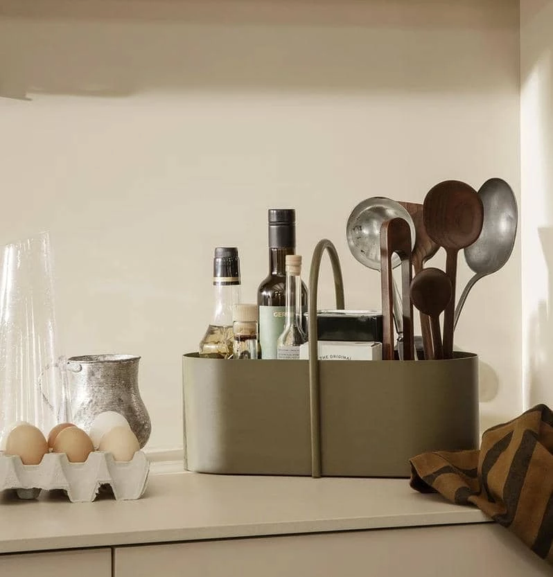 The Grib Toolbox is a handy solution for your various indoor-outdoor needs. Made from powder-coated metal, the gentle curves of its oval form are mirrored in the spherical handle, which rests comfortably in your palm when carried. We call it a toolbox, but you can use it for anything – gardening utensils, cleaning articles, office supplies or bathroom essentials.