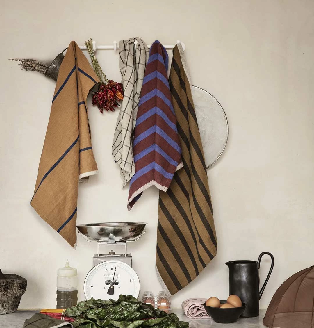 Made in a lovely quality of natural linen and cotton, the Hale series of yarn-dyed tea towels allows for a lush mix of colours in your kitchen. The various designs merge tradition with the contemporary, and lets you pair the colours to suit any mood or setting.