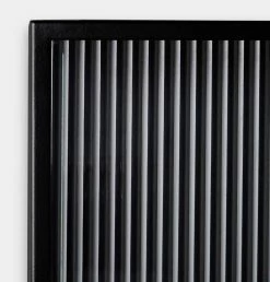 Profiling the same industrial aesthetic as our standalone Haze Vitrine, the Haze Wall Cabinet is, as its name suggests, a practical wall-mounted cabinet for storing smaller items. The black powder-coated steel frame is now available with elegant reeded glass panels and door, and is the ideal solution for storing glasses in the kitchen or beauty essentials in the bathroom. It also works equally well in a hallway filled with everyday objects such as keys and sunglasses.