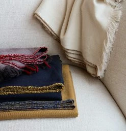 This large blanket keeps you warm on chilly nights or mornings where you want to sleep in. Woven in a rich blend of cotton and lambswool, the blanket presents an updated classic with the traditional herringbone pattern contrasted by a bright yarn along the long edges and fringes on both ends.