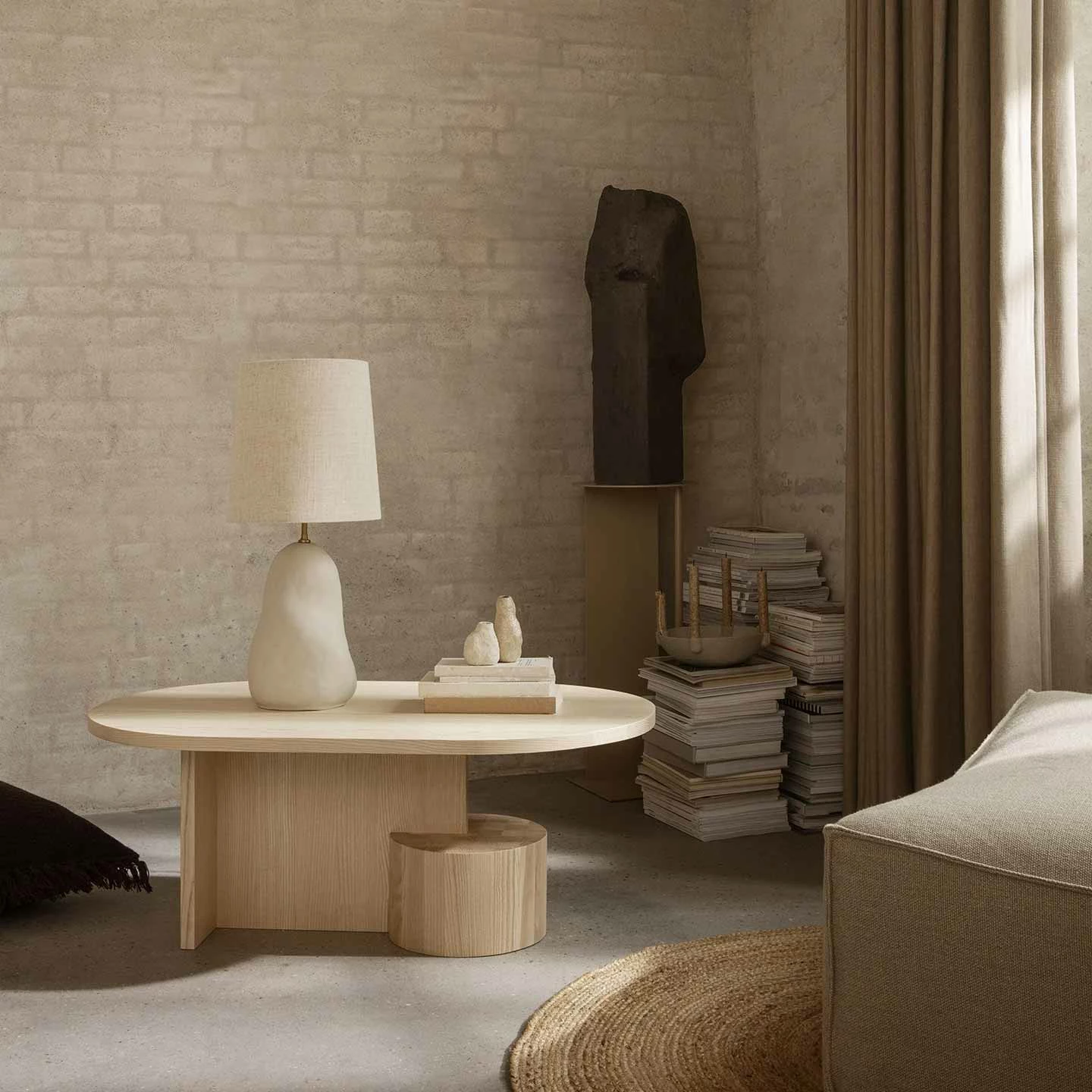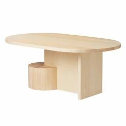 Crafted from FSCβ’-certified solid ash, the Insert Coffee Table is a sturdy yet sculptural piece. Playing with multiple shapes, the oval top rests lightly upon two geometric joints that are anchored by a heavy, cylindrical base. The table is a subtle piece of art in your home that is matched by its functionality as a coffee table.