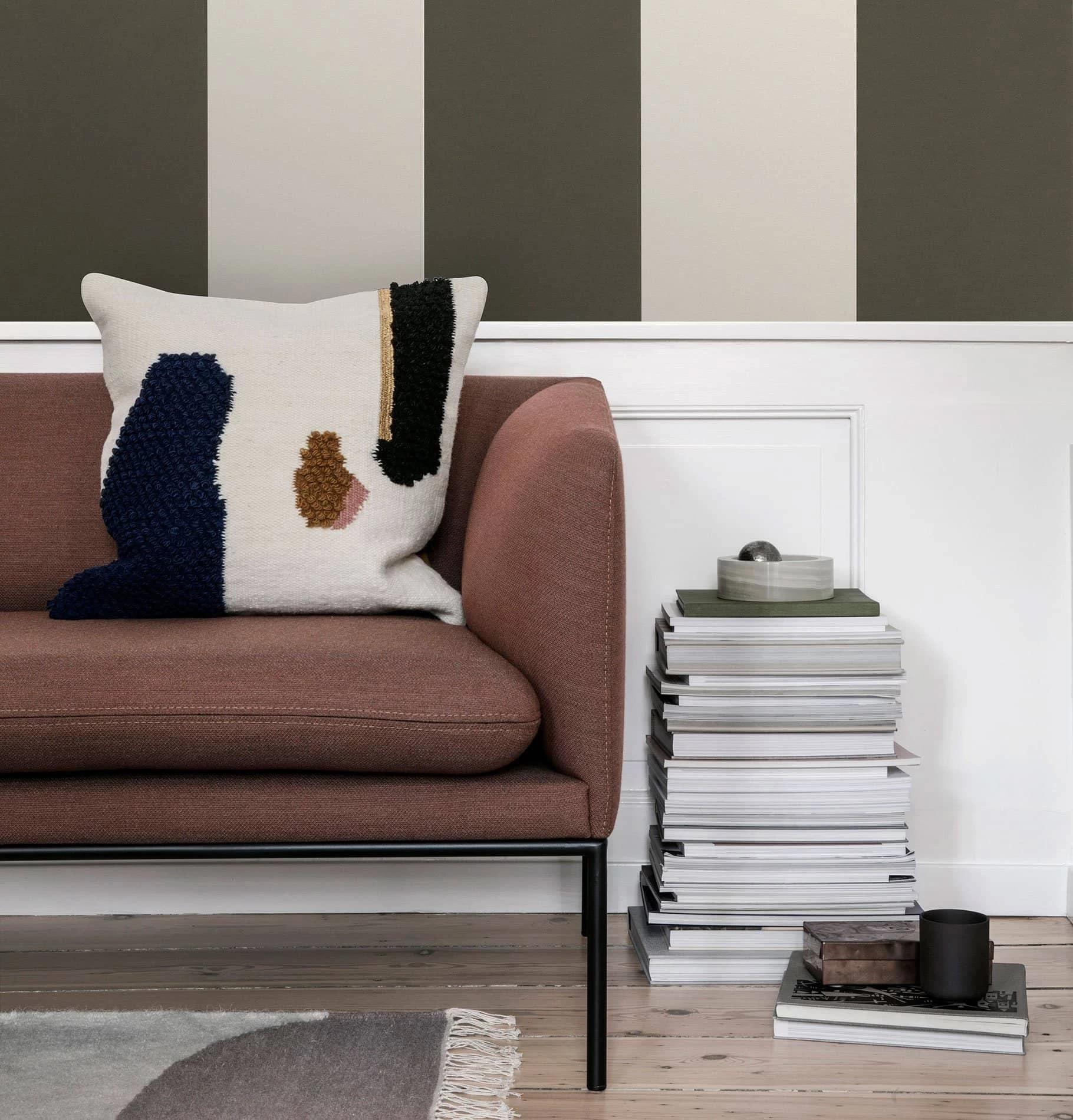 “We are challenging the classics of geometry and exploring new shapes,” says Ferm Living about this design. “This process is mirrored onto a new line of textiles, cushions and accessories centred in engaging forms. We used the special loop weaving technique to create the 3D effect and to form the unique pattern. The Kelim cushions with the unique design is made of New Zealand wool, which is an incredibly soft and itch-free quality.”