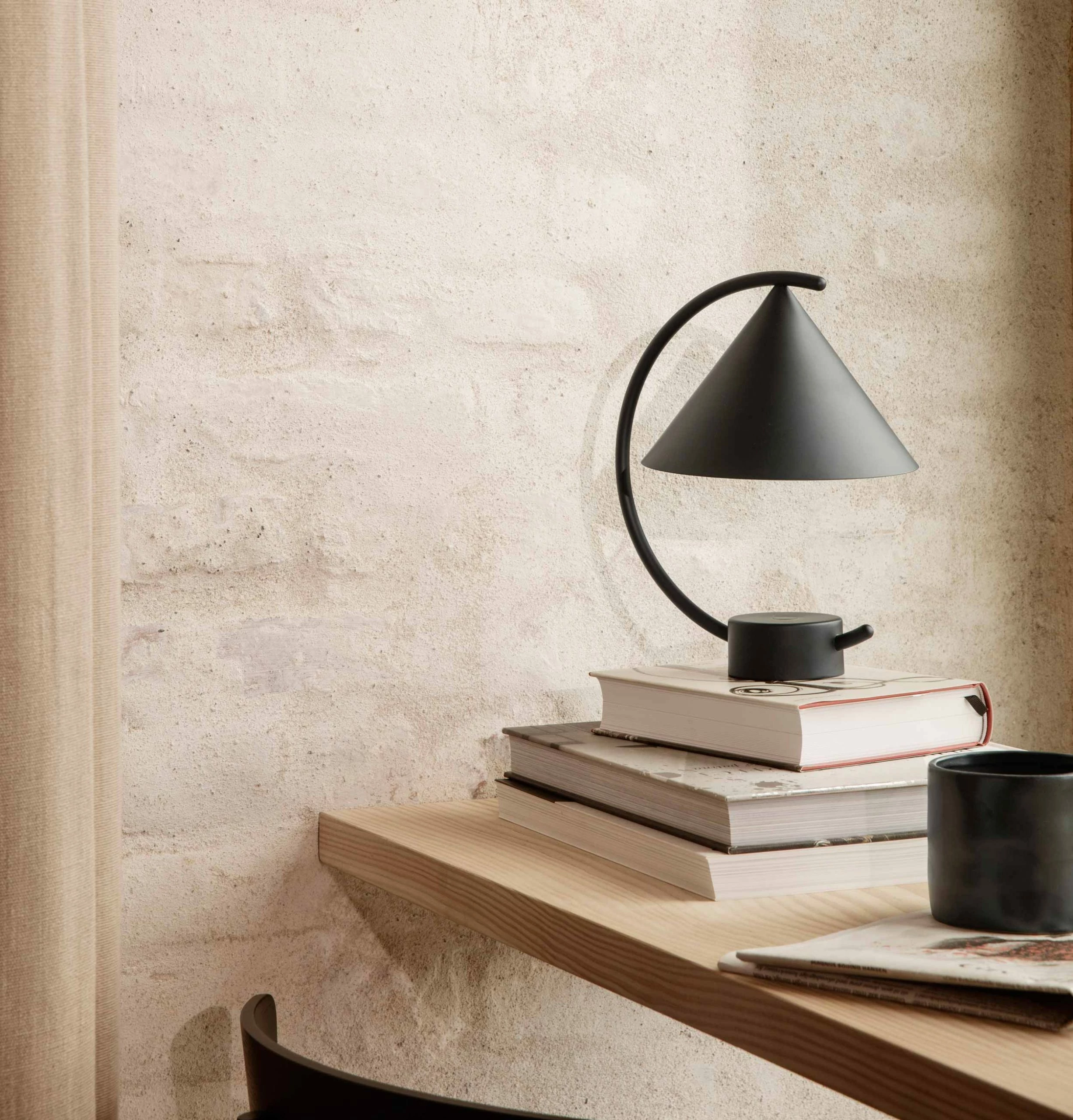 The Meridian Lamp presents a portable, dimmable lighting solution that works in a multitude of settings. Made in collaboration with the design studio Regular Company, the intriguing, sculptural form of the Meridian Lamp is based on three simple geometric elements. Combined, the lamp presents a clean, modern expression. The lamp offers easy, hassle-free charging, and provides up to 12 hours of light at a time.