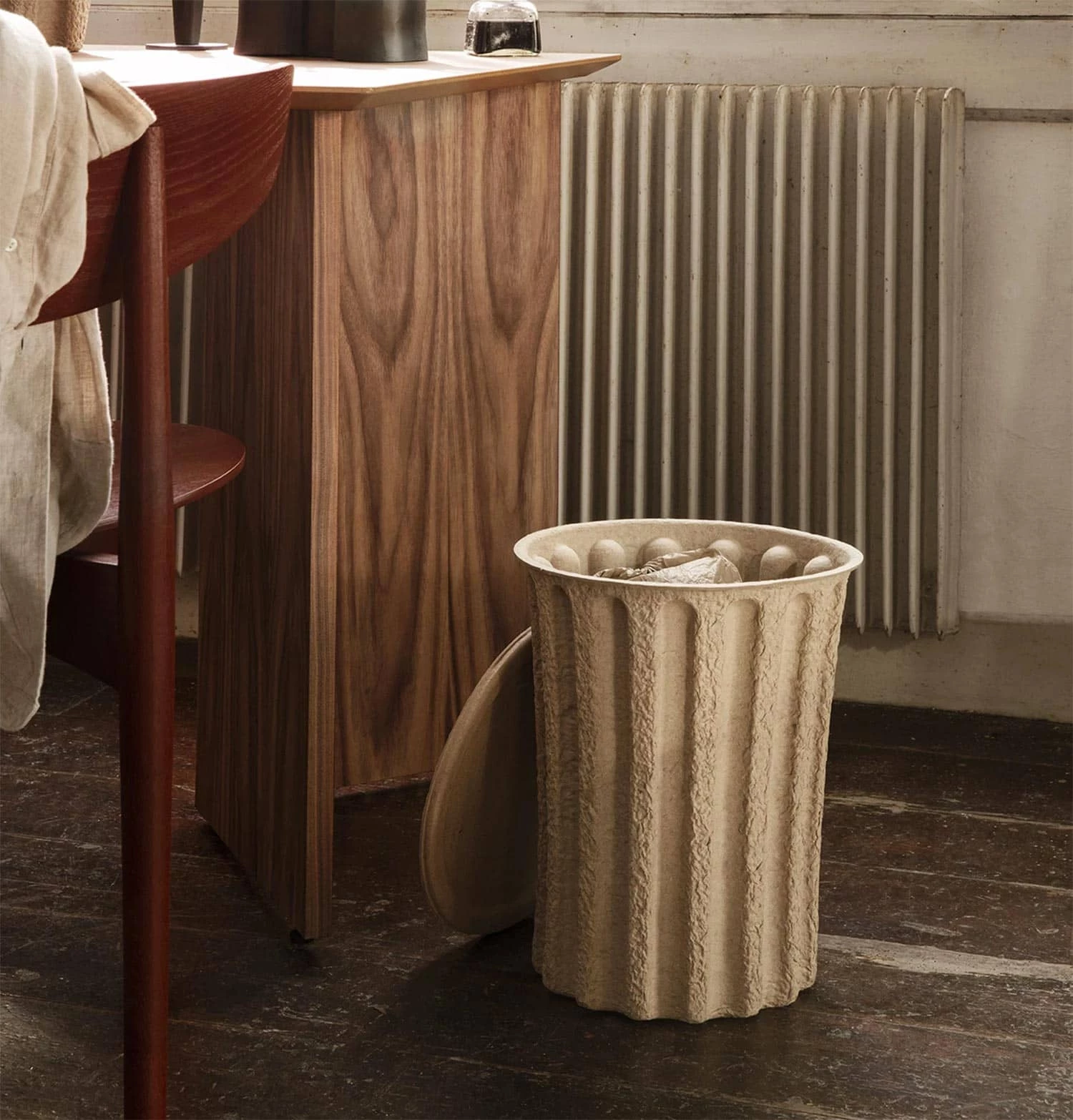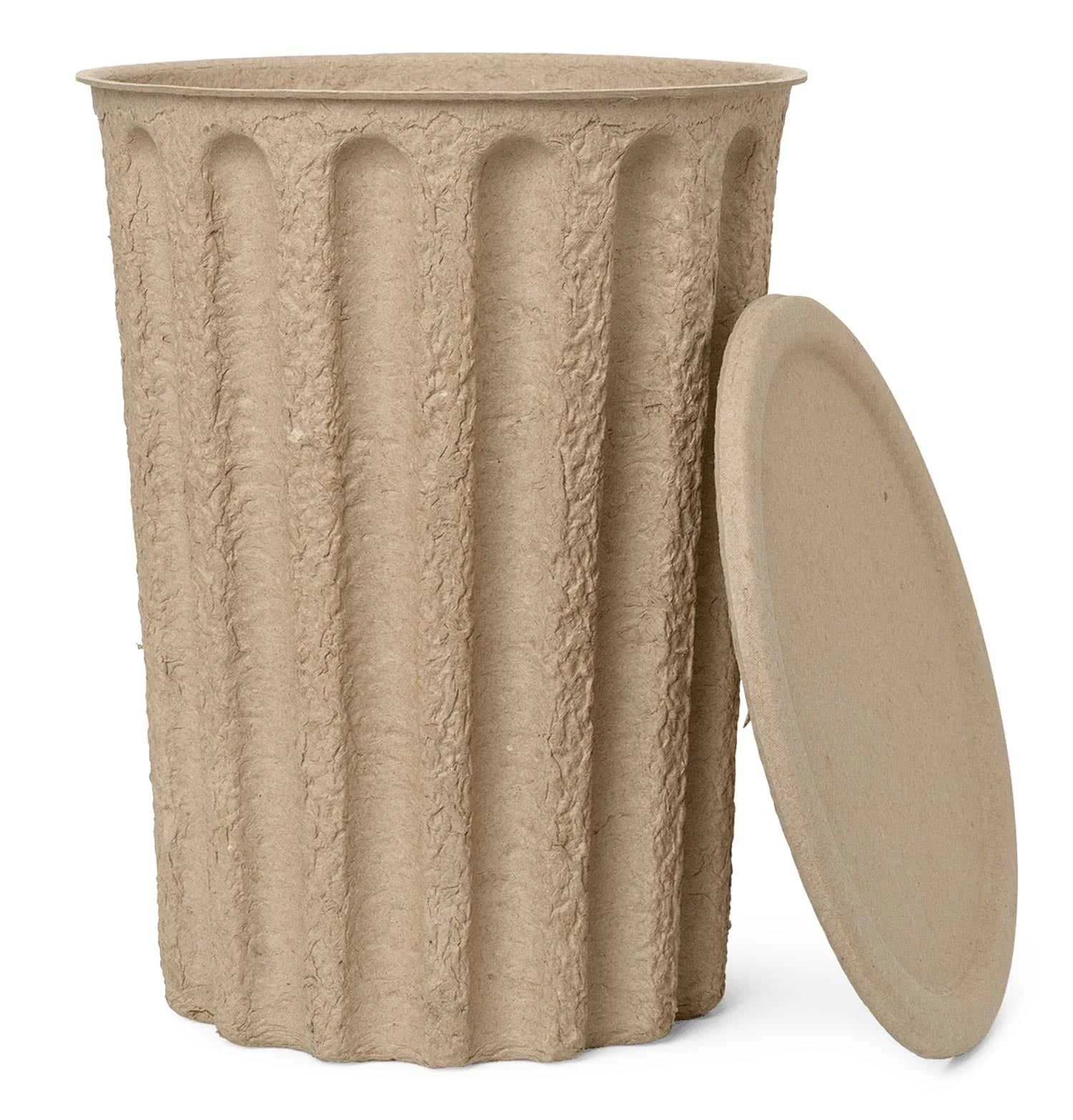 Made from raw, 100% recycled and biodegradable paper pulp, this lidded cylindrical container gives you a handy, lightweight and stackable storage solution. We call it a paper bin, but you can just as easily use it as a storage solution for rolls of wall and wrapping paper or other items.