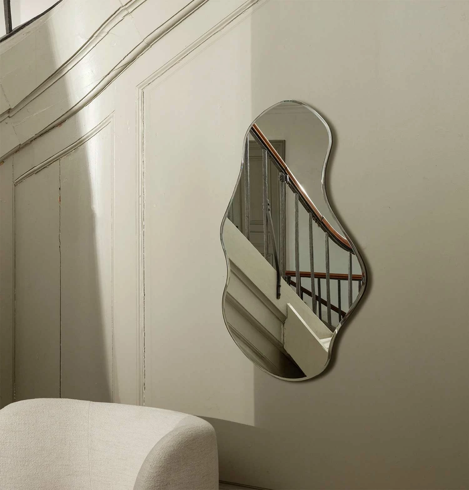 The Pond Series marries form and beauty by using organic shapes, inviting open and fluid forms into your home and turning this functional mirror into a decorative wall piece. The curved edges are held by a slim, metal frame, and can be hung in any direction so that you can find the perfect fit for your space. Please note: the mirror’s metal frame features two welding marks at the points where the metal has been fused together.