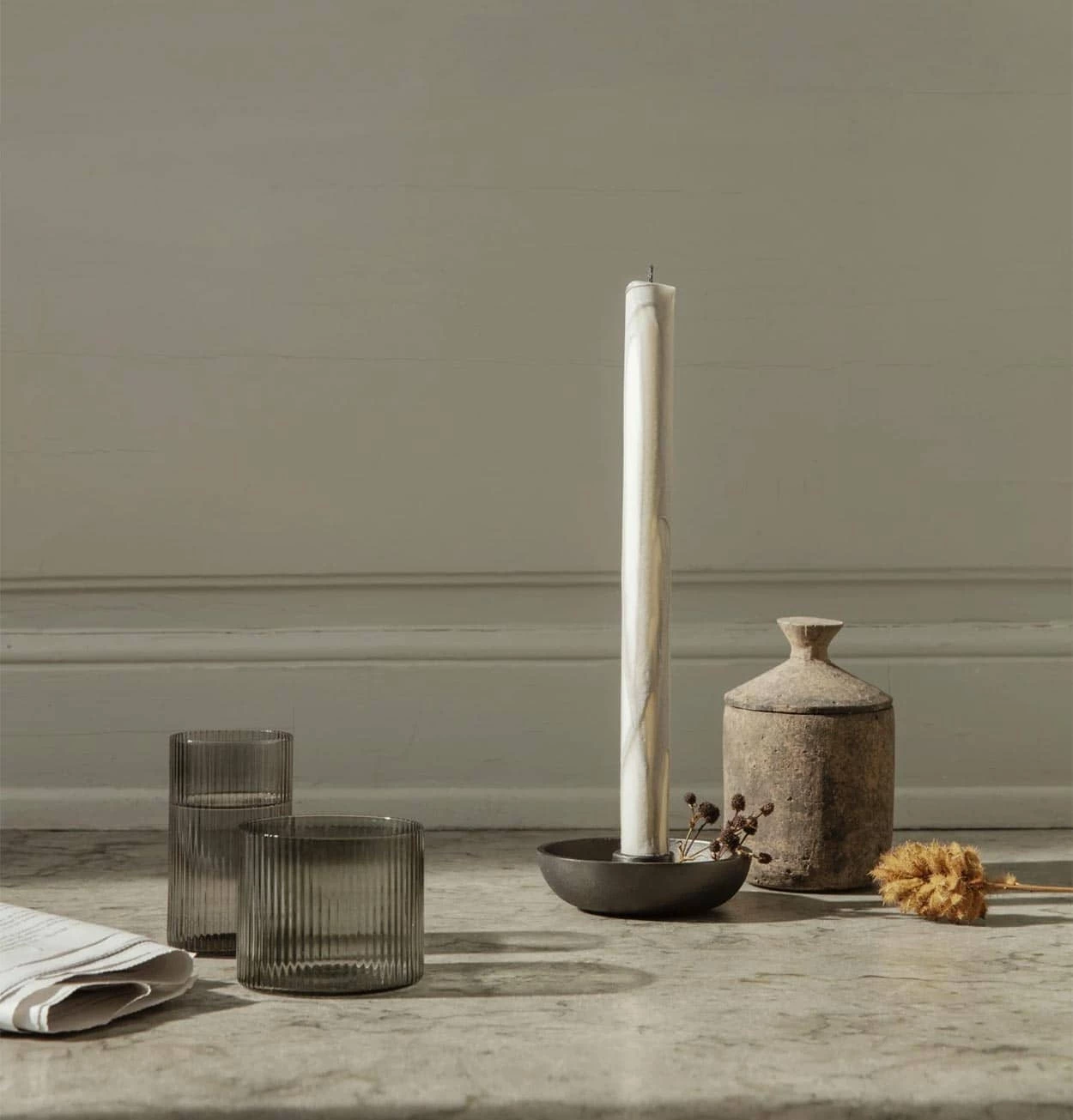 Mouth blown into the mould, this set of four low glasses features a distinctive, beautifully rippled surface. The vertical lines add a strong and sophisticated look to their understated, classic form and are perfect for casual dining. Pair them with other pieces in the Ripple glass collection for a unified dining experience.