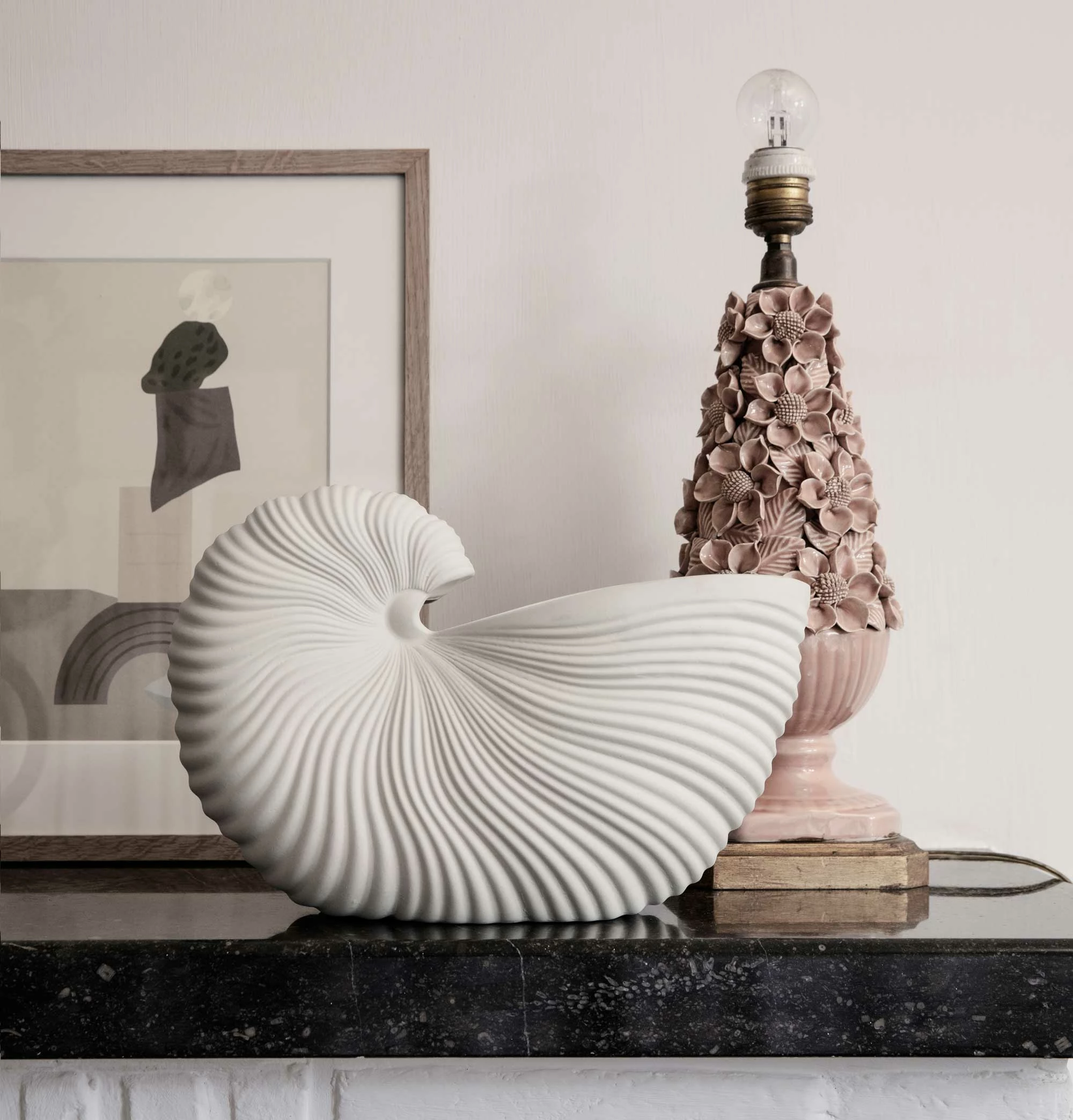 Filled with your favourite flowers or by its own, this pot shaped like a nautilus shell merges natural shapes with contemporary design. With a matte outside and glazed inside, it adds delicate detail to any room, simple and sculptural all at once.