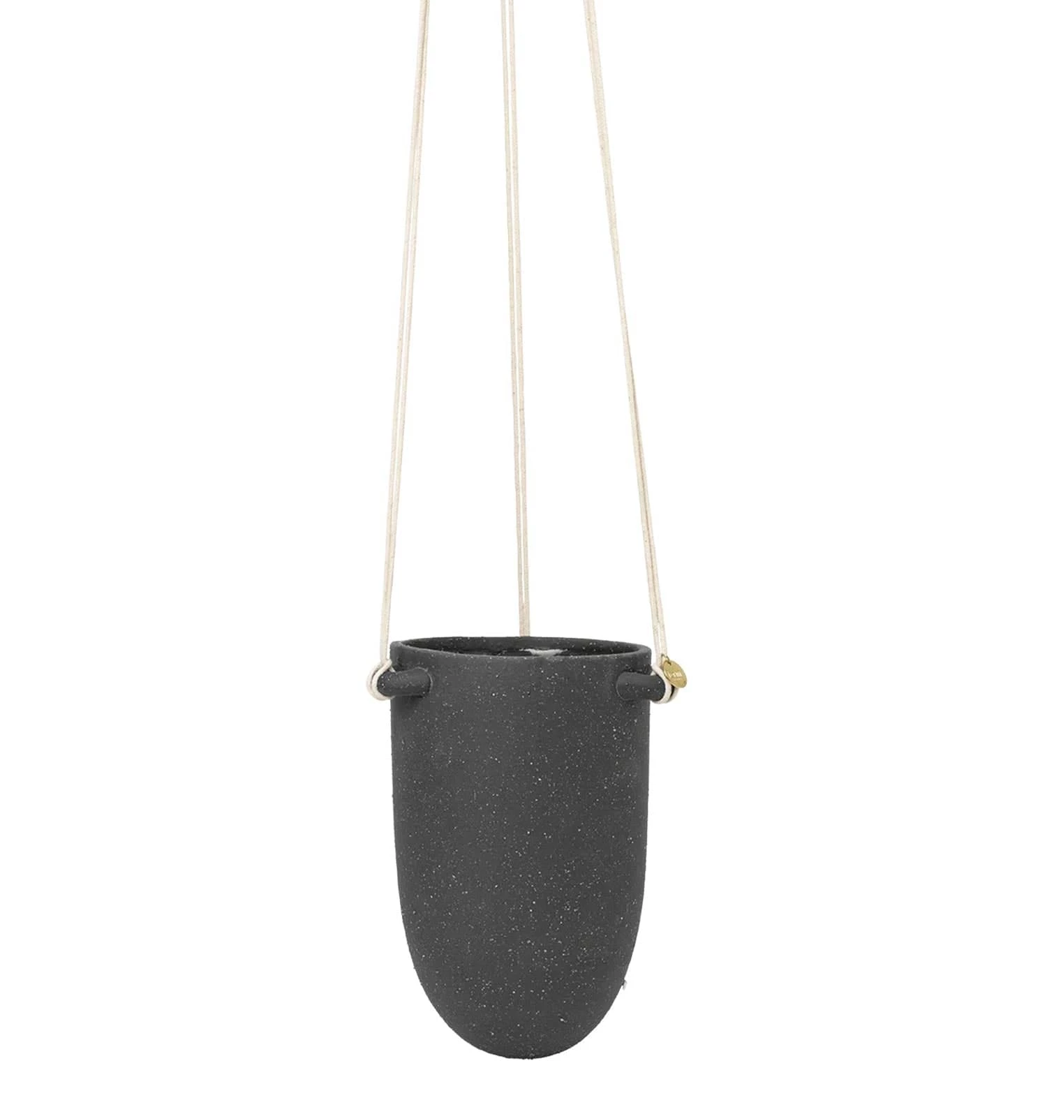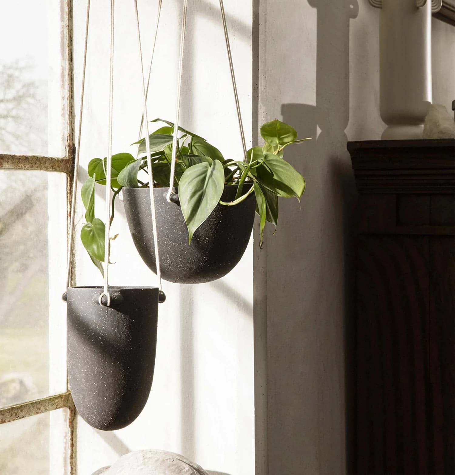 Made with a distinct sort of stoneware that features a grainy, raw texture, the Speckle line presents an organic, handmade look and feel. This hanging version carries on the fluid silhouette with spherical pots suspended by twisted cotton rope. The ample rope length means that the height is easily adjusted to the desired location in your home.