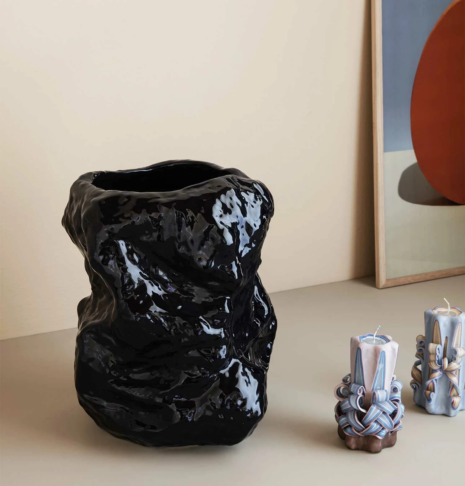Originally shaped by hand, our Tuck Vase strikes the perfect balance between purposeful and powerful. The artistic piece is layered with a high-shine glaze in a creamy cashmere colour for a light-reflecting finish that highlights its furrowed surface. Fill it with flowers or branches or let it make a solo statement on a surface in your home.