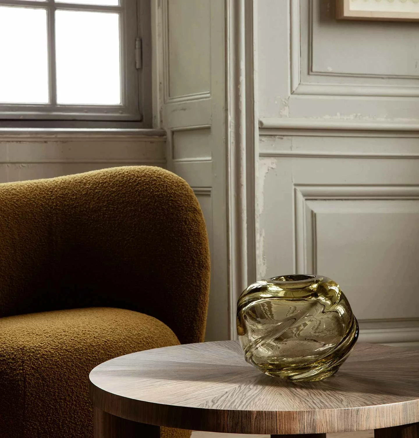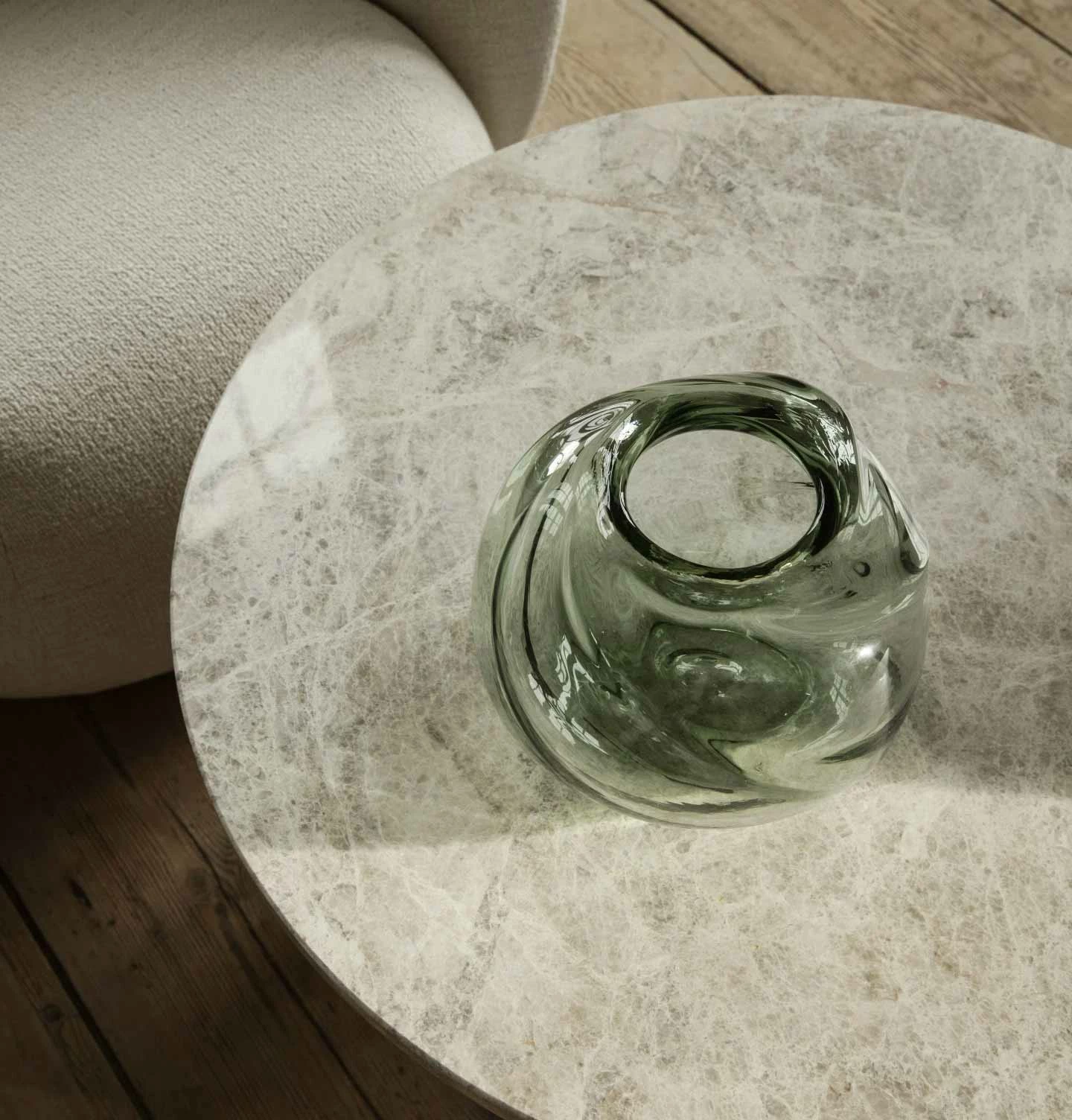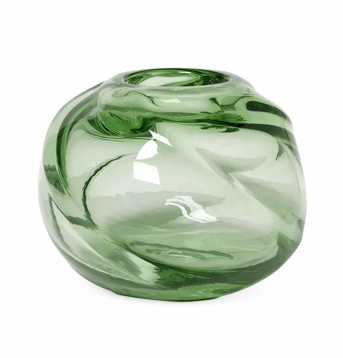 The mouth-blown Water Swirl Vase recalls a whirl of cascading liquid. With its translucent glass, the vase achieves a light and effortless, almost dancing, expression despite being crafted from solid, massive glass. Fill the vase with flowers or stalks, or style it solo and enjoy how the sun filters through the transparent glass. Enjoy the unique twists and curves of each individual piece, as no two vases are identical.