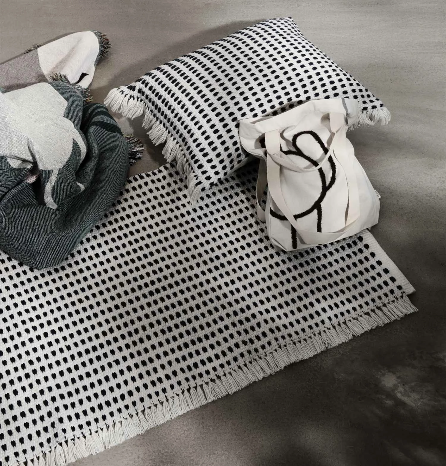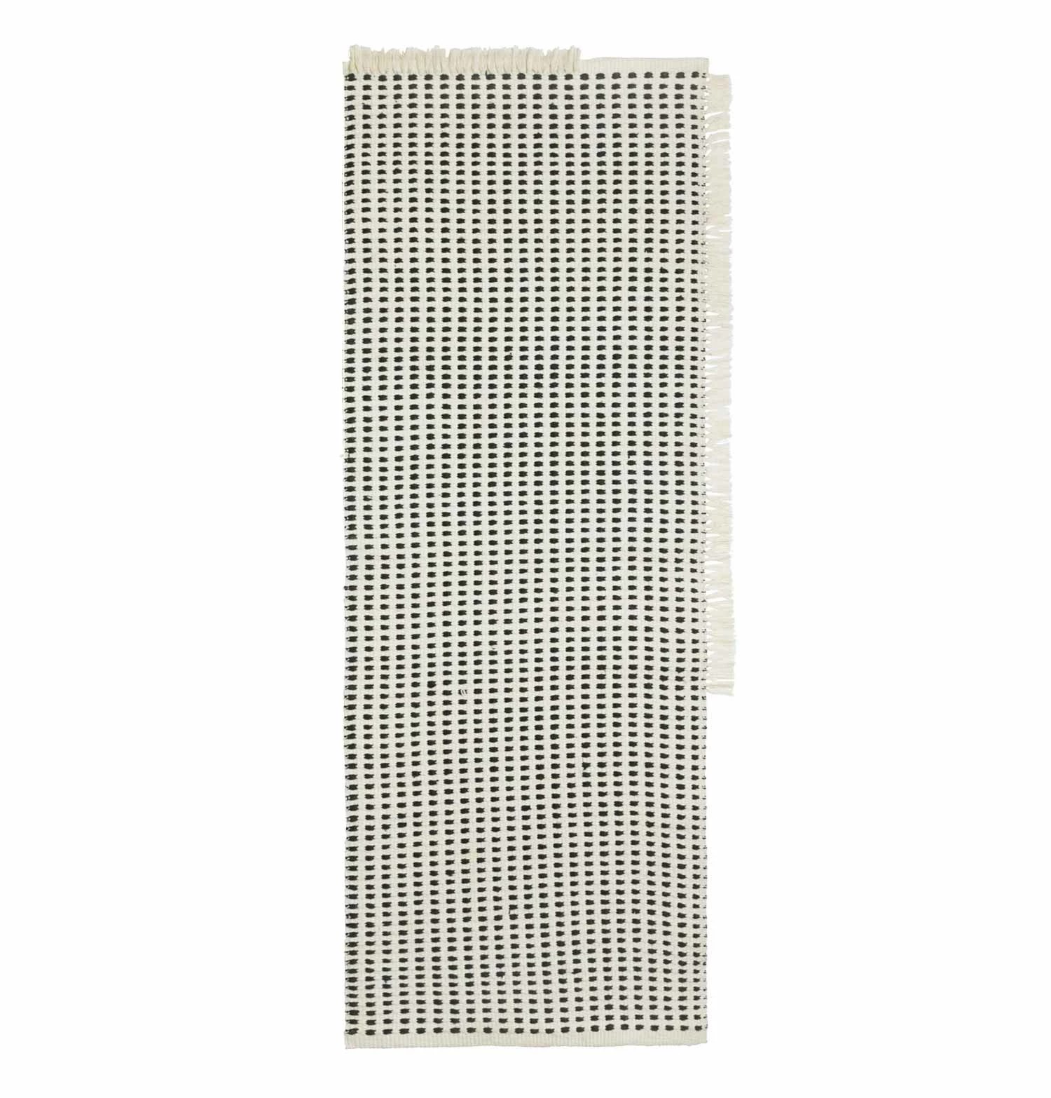 The Way series of rugs, runners and cushion covers puts post-consumer plastic waste to good use: each sustainable design is made from recycled PET yarn woven into a two-tone design with a tactile yet durable finish. Perfect for covering up imperfections or adding a subtle pattern to a room, the seriesβ flatweave runner is detailed with asymmetrical rows of fringed trim, underpinning the artisanal feel.