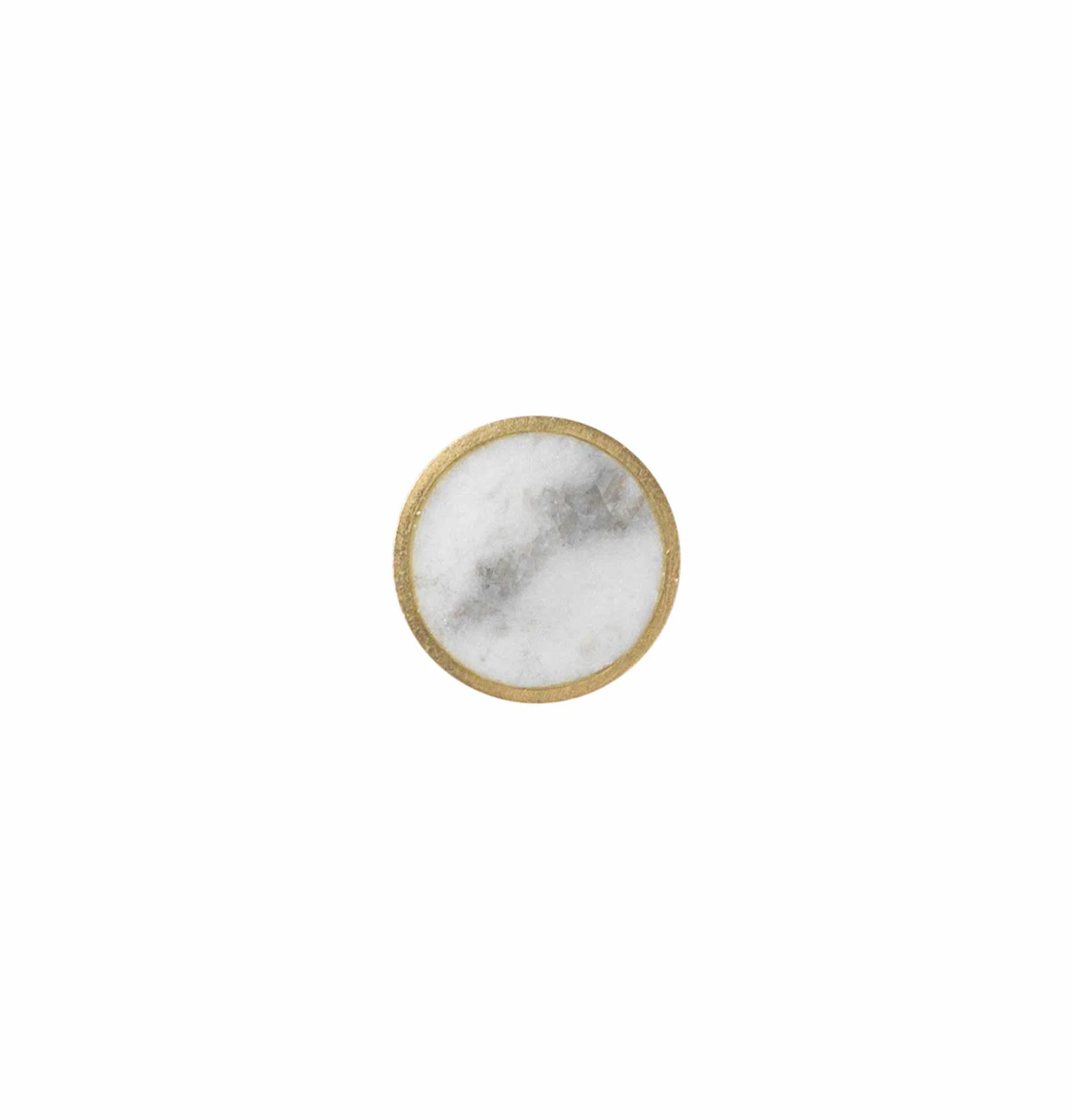 Use the same hooks, or experiment with mixing the different earthy materials to achieve an engaging expression with many, smaller focal points. This large hook features white marble set in a brass mount.