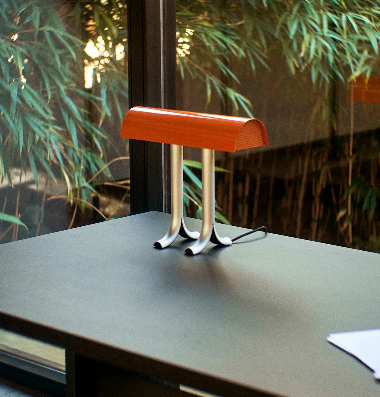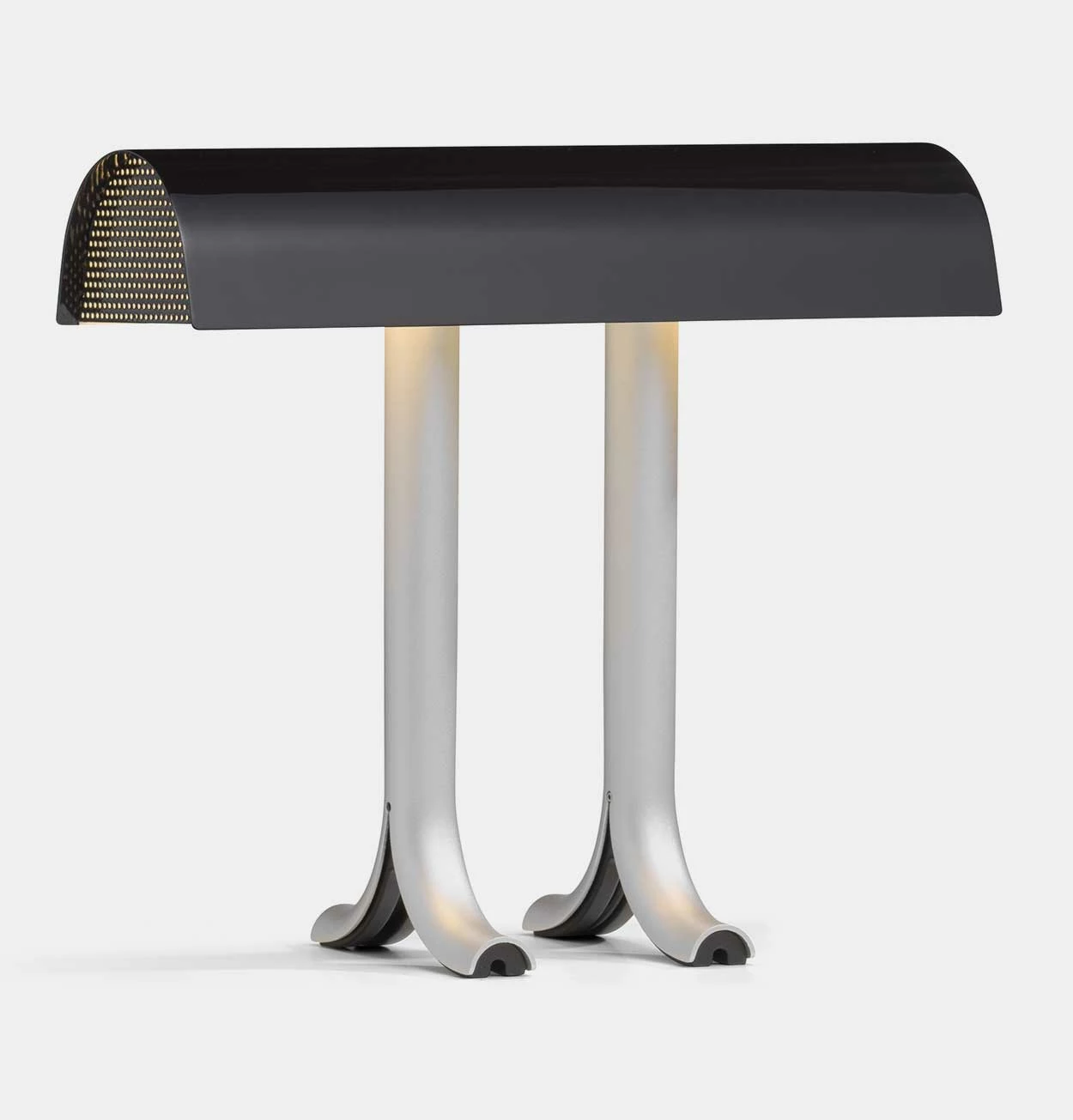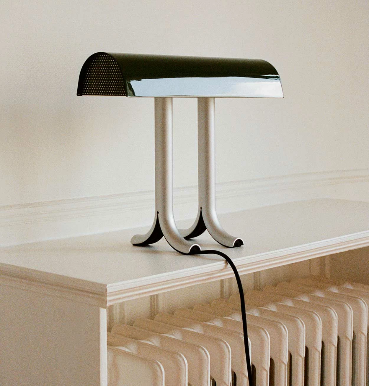Sam Weller’s Anagram Table Lamp fuses functionality with visual appeal to create a table lamp with a robust construction and strong personality. Featuring a generously curved, glossy shade that sits atop two split anodised aluminium legs, the design’s contrasting elements update the familiar lamp typology with an original and contemporary aesthetic. The durable sheet steel shade and tube legs are built to last, creating a solid presence that is characterised by its intuitive functionality. The lamp features an on/off toggle switch and uses standard retrofit bulbs, creating an ambient downlight that makes it equally suitable as a desktop-based lamp, or as a supplementary light source placed on a sideboard or windowsill. The shade is available in several different colour options.