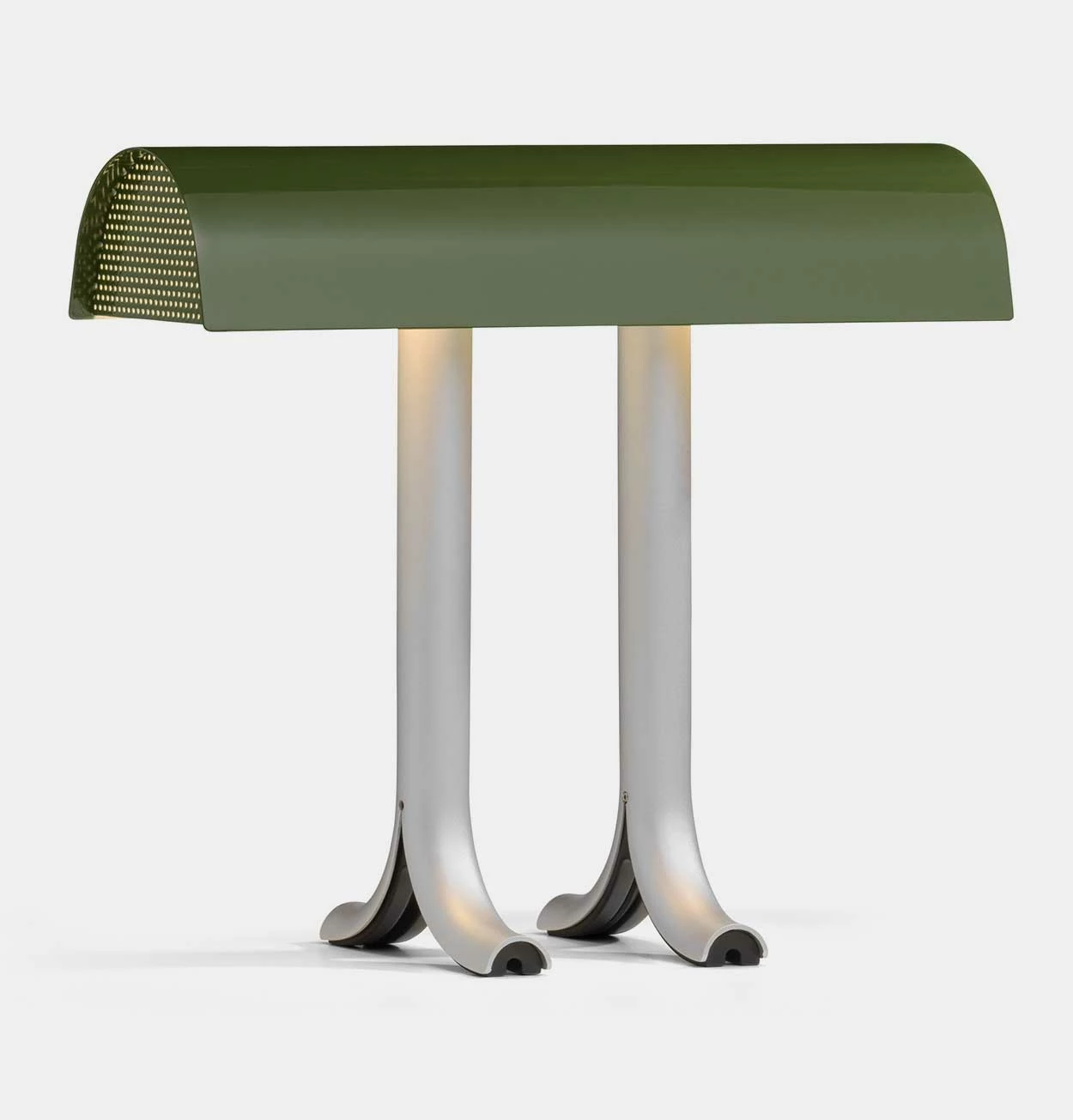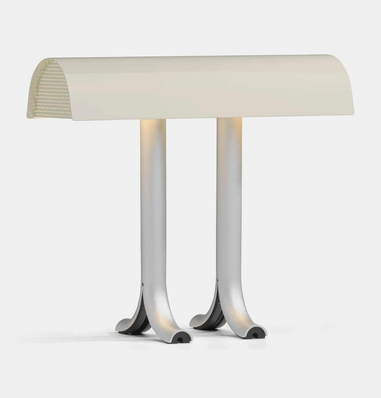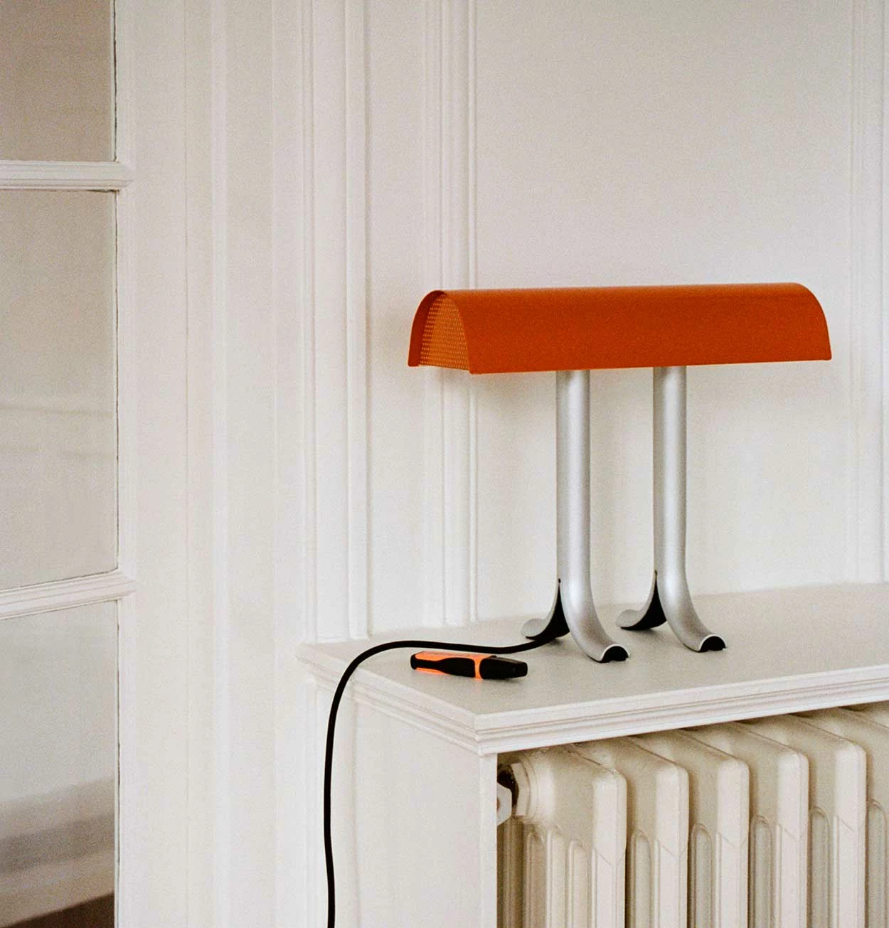 Sam Weller’s Anagram Table Lamp fuses functionality with visual appeal to create a table lamp with a robust construction and strong personality. Featuring a generously curved, glossy shade that sits atop two split anodised aluminium legs, the design’s contrasting elements update the familiar lamp typology with an original and contemporary aesthetic. The durable sheet steel shade and tube legs are built to last, creating a solid presence that is characterised by its intuitive functionality. The lamp features an on/off toggle switch and uses standard retrofit bulbs, creating an ambient downlight that makes it equally suitable as a desktop-based lamp, or as a supplementary light source placed on a sideboard or windowsill. The shade is available in several different colour options.