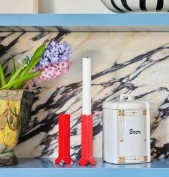 Designed by Belgian duo Muller Van Severen, the Arcs Candleholder is formed by a unified chain of vertical arcs that encase the candle to create an elegant, scalloped silhouette. Made in aluminium and steel, Arcs Candleholder is available in two heights with different colour options.