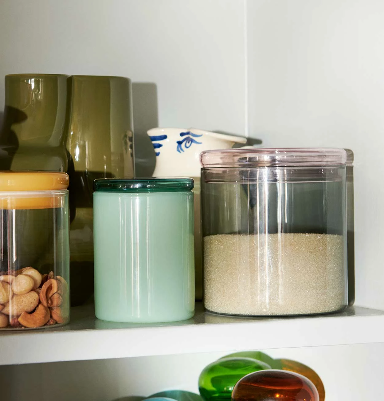Borosilicate Jar is a multifunctional container with both decorative and functional qualities. Crafted in borosilicate glass with a contrast-coloured lid, it can be used for display or storage in most rooms in the house. The lid is sealed with a fitted silicone ring that makes it suitable for storing food, as well as trinkets and other small objects. Available in a choice of different sizes and colours.