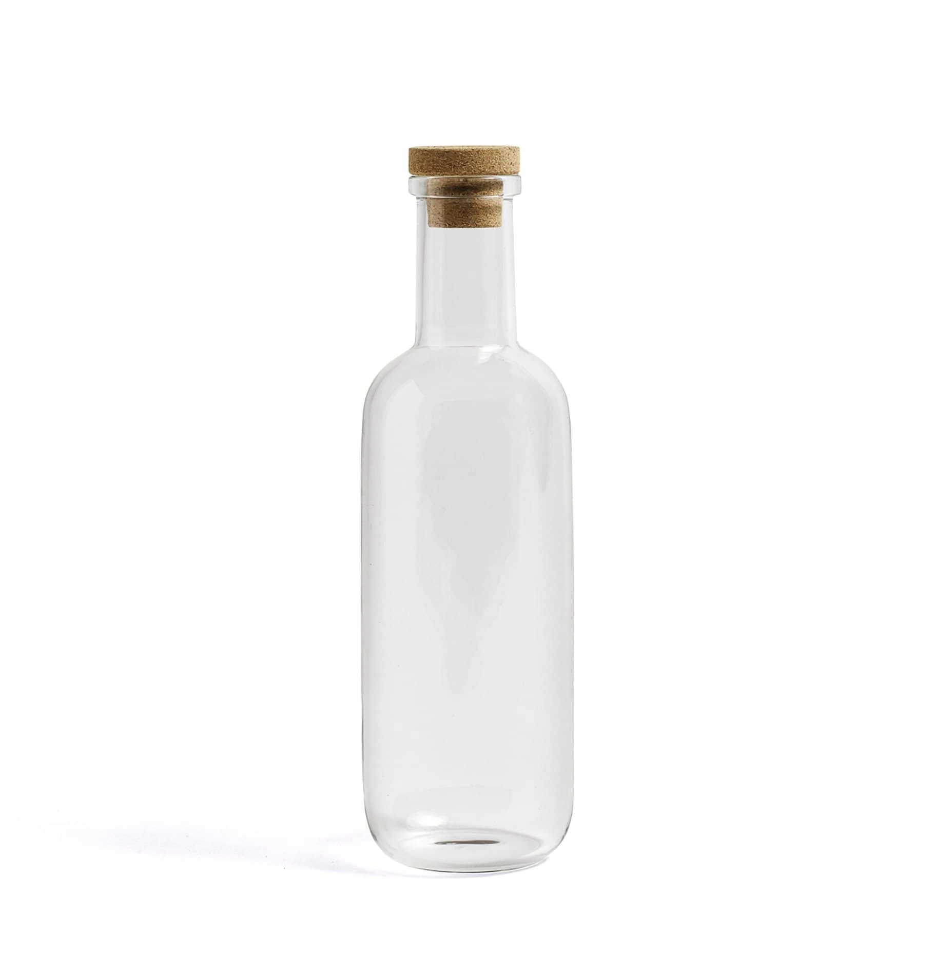 HAY’s Bottle is made in borosilicate glass, making it extra resilient as it is resistant to temperature change. Available in two sizes in clear glass and finished with a convenient cork stopper.