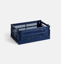 HAY Colour Crate is a series of colourful storage boxes with a distinctive, perforated design. Made from 100% recycled post-consumer plastic waste in a variety of different colours and sizes, the crates can be stacked on top of one another in different size combinations. The multifunctional crates are suitable for storing and organising a wide range of items on shelves, tables or inside cupboards.