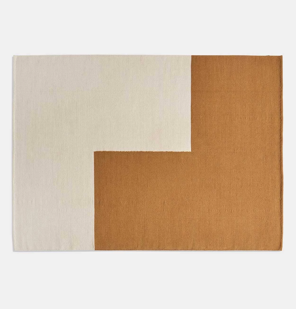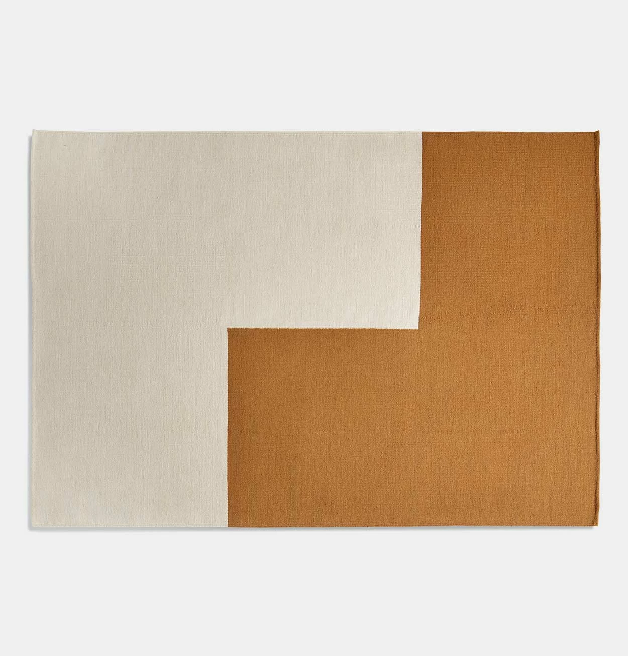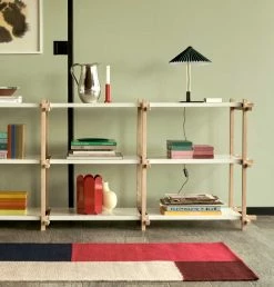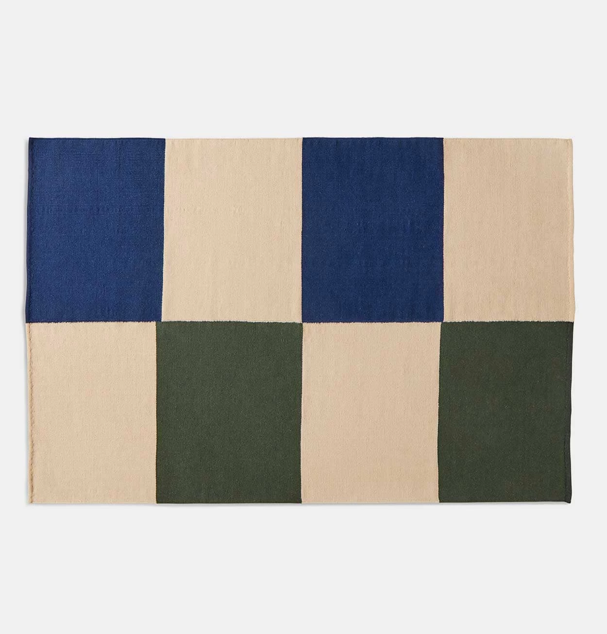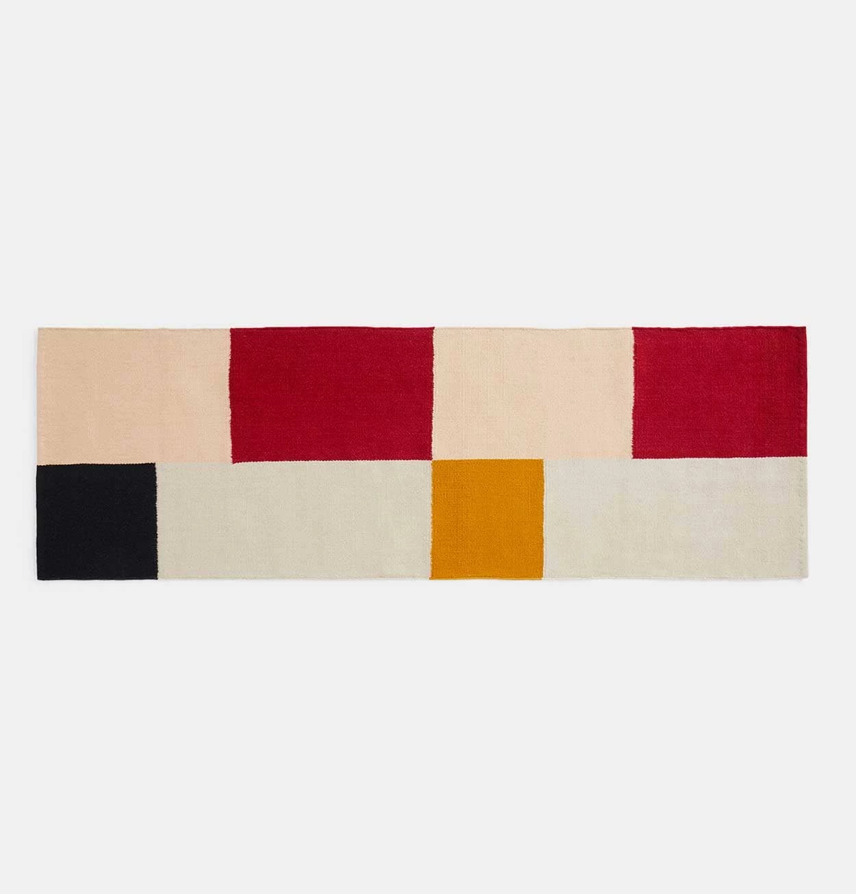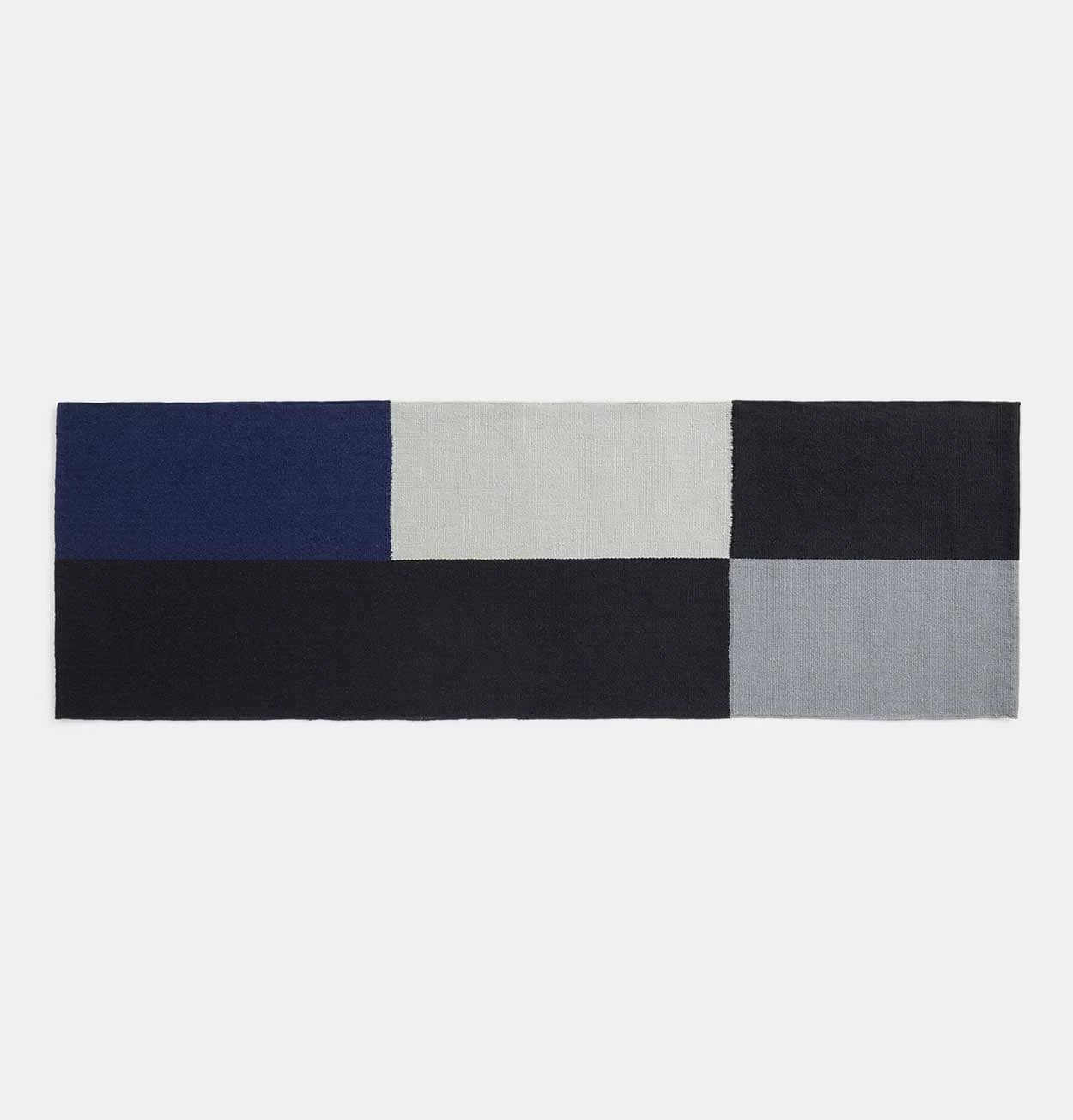 Inspired by his decorative woven wall art, Ethan Cook’s Flat Works is a series of handwoven kelim rugs designed for HAY. Featuring a geometric abstract design, the rugs translate the designer’s bold colour-blocked artwork into practical and decorative items. Crafted in a New Zealand wool-cotton blend, the dyeing and weaving processes mean that each rug varies slightly, giving them a unique, one-of-a-kind quality. Available in different sizes and colour combinations, the rugs are suitable for use in the bedroom, hallway, living room and many other interior spaces.