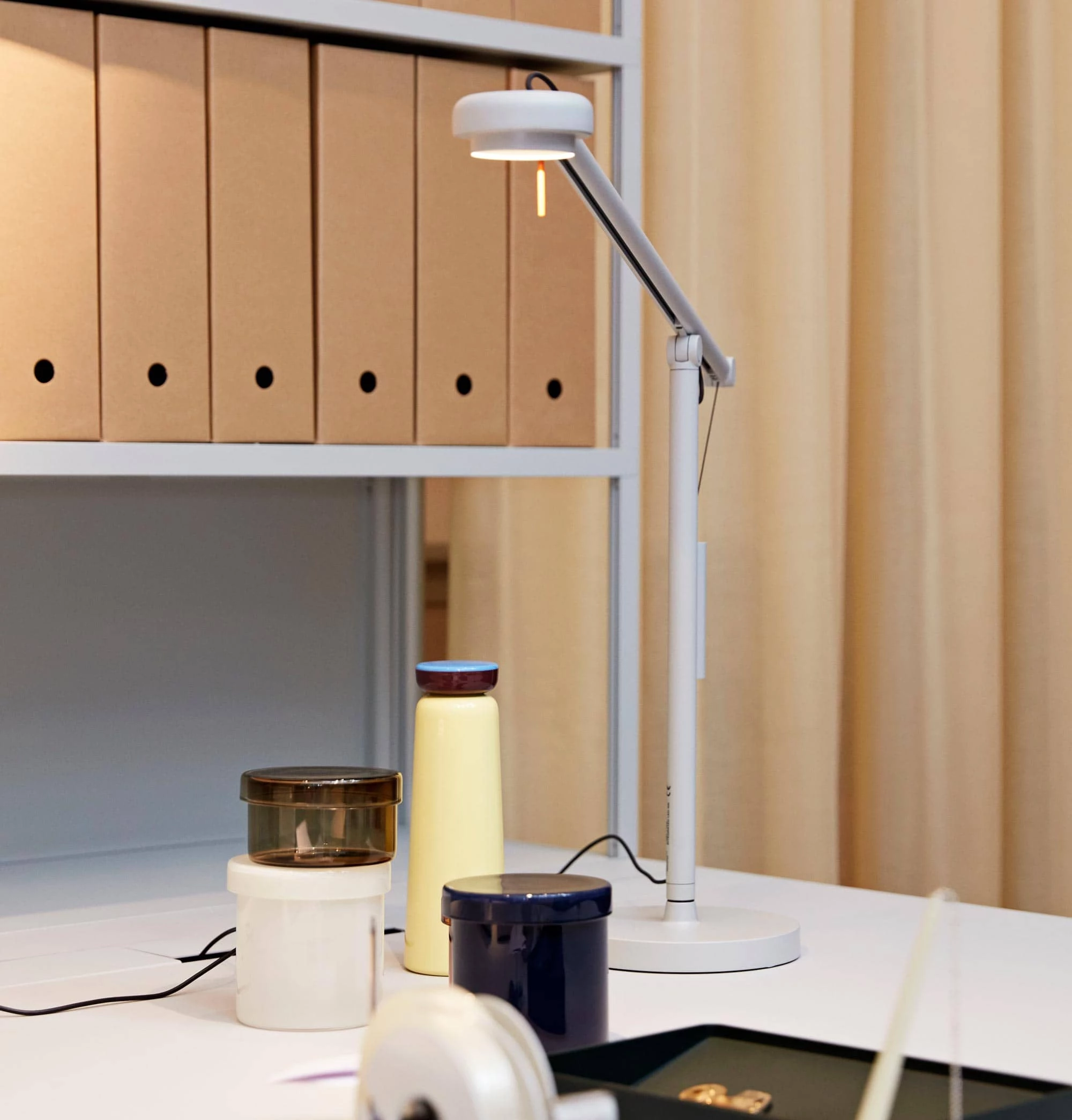 Named Fifty Fifty after the lampβs counterweight system that creates equilibrium between the two parts, it is clear to see how Sam Wellerβs references to physics and engineering influence the design. Based on the idea of stripping a multi-purpose task light to its fundamental elements, Fifty Fifty balances refined, pared-back aesthetics with optimal functionality. Configurable aluminium components minimise the overall complexity of the design and manufacturing process, creating a feature of the joints and mechanisms that is consistent throughout the entire series. The single cantilever arm is easy to tilt and pivot with one hand, featuring a touch-sensitive dimmer switch for precisely positioning and controlling the light source. The collection comprises lamps with weighted bases in large and small sizes, a large table lamp with clamp base and a floor lamp. Suitable for shared or private areas in homes or corporate environments.