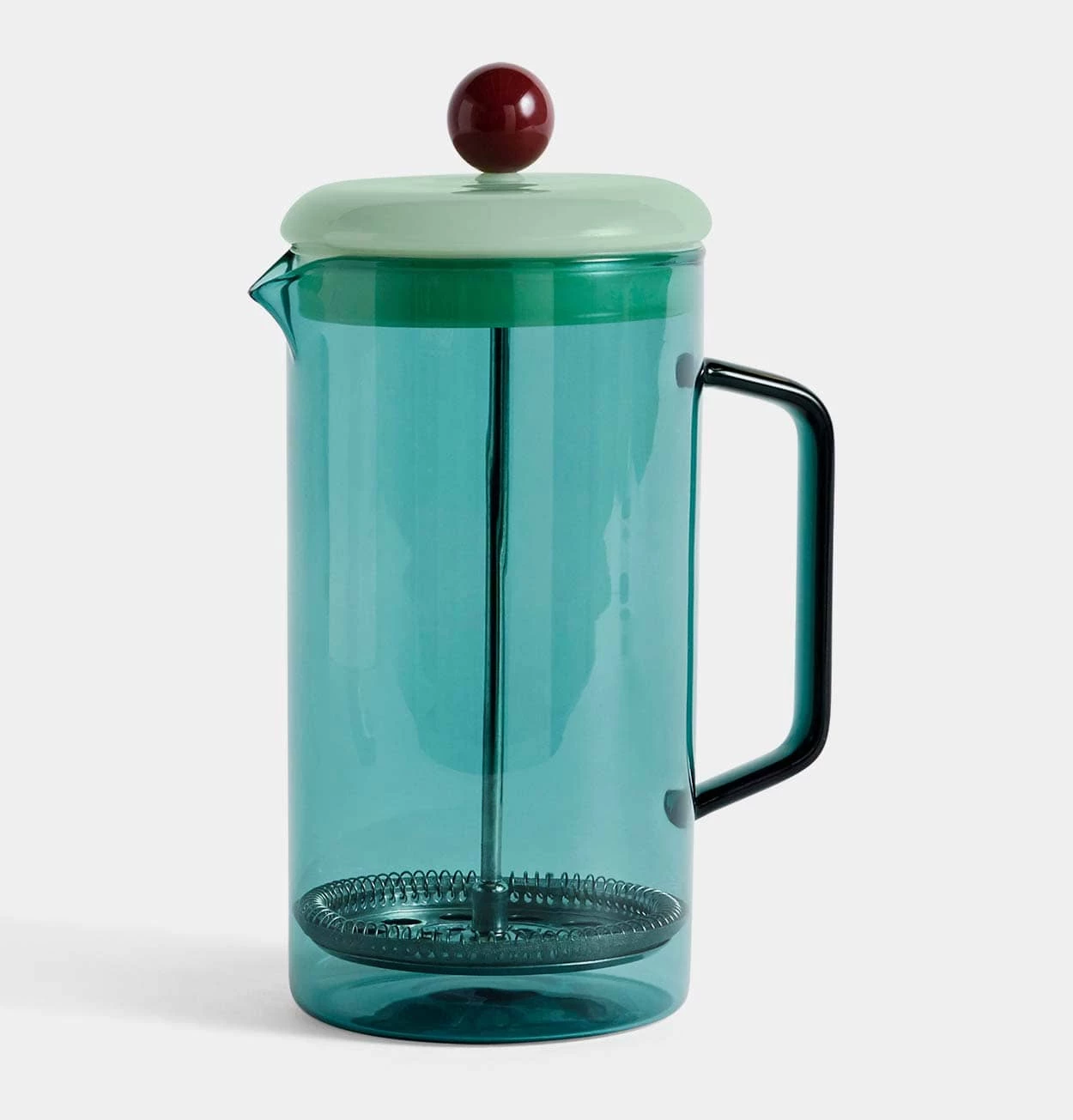 HAYβs French Press Brewer is a colourful update of the classic kitchen essential. Made in durable borosilicate glass with a contrasting lid and knob, it adds a decorative twist when serving tea and coffee. Available in different colours.