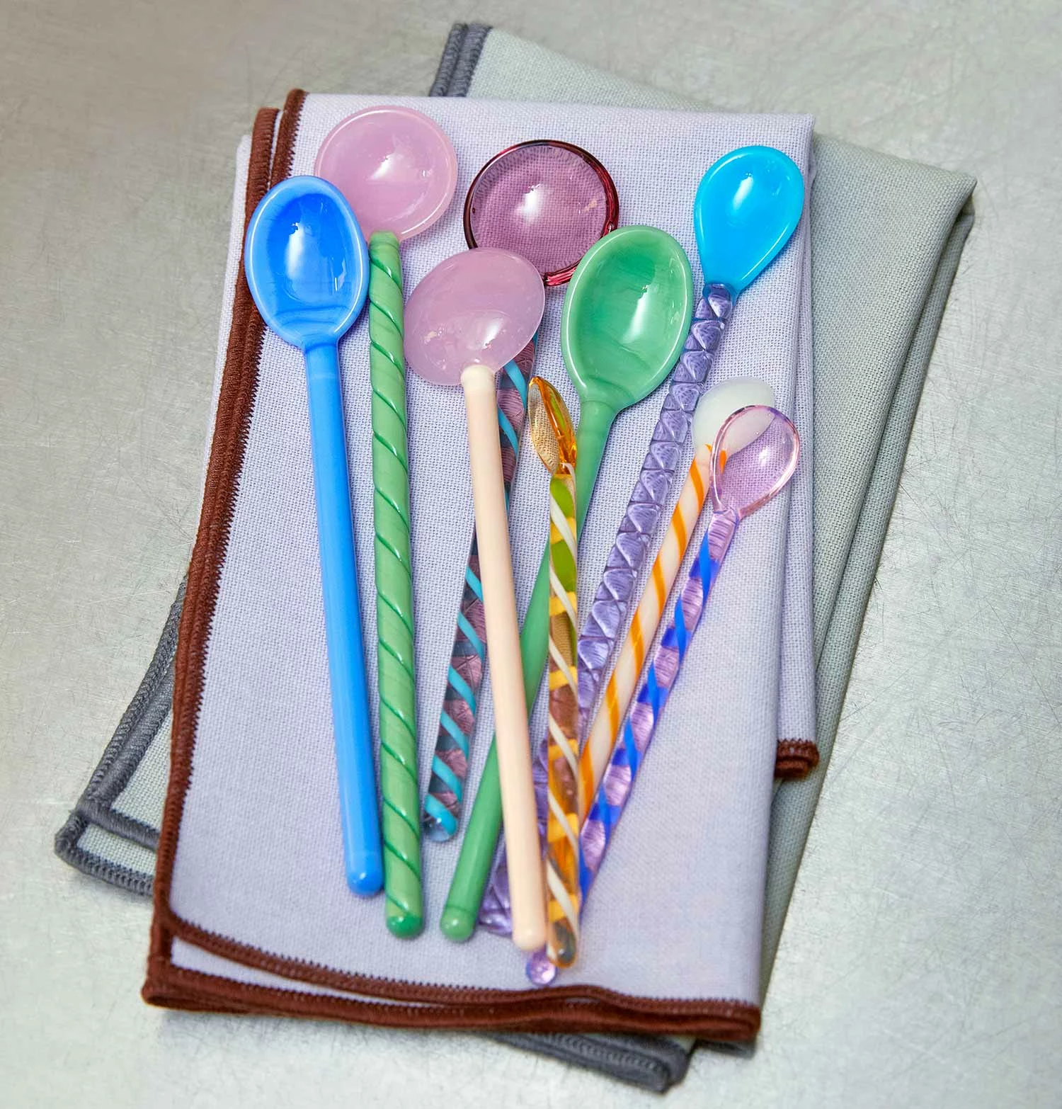 HAY’s collection of Glass Spoons add a decorative twist to a kitchen essential. Handmade in elegant designs offering different colours, sizes, and shapes, the spoons can be used for spices, salt, tea/coffee, or purely for decoration. They come in packs of two.
