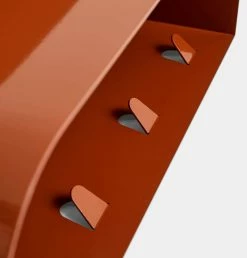 Korpus Shelf is a series of colourful wall-mounted shelves created for HAY by Norwegian product designer Andreas Bergsaker. Based on the desire to create a durable multi-purpose shelf from recyclable material, Korpus Shelf is made from sheet aluminium, known for its lightness, strength and ability to be reused countless times. The aluminium undergoes an industrial stamping and punching process to be formed into the distinctively curved column and top. Keyhole slits at the back facilitate mounting, while concealed hooks in the column provide additional hanging possibilities. Available in a wide range of sizes and colours, these versatile shelves can be used in many different rooms in the home, such as a coat rack in the hallway, storing kitchen utensils, hanging bathroom towels or displaying ornaments in the living room.