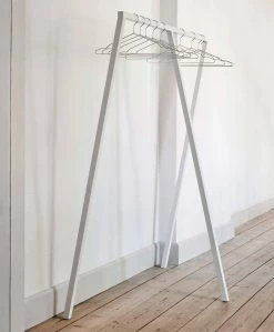 Loop Stand Hall is a simple wardrobe stand that is equally suited for public and private settings, offering a simple and discreet wardrobe solution.