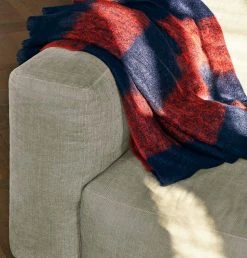 With its luxurious mohair-merino wool blend, HAY’s Mohair blanket has a thick, tufted texture in contrast stripes and is finished with fringed ends. Available in different colour combinations.