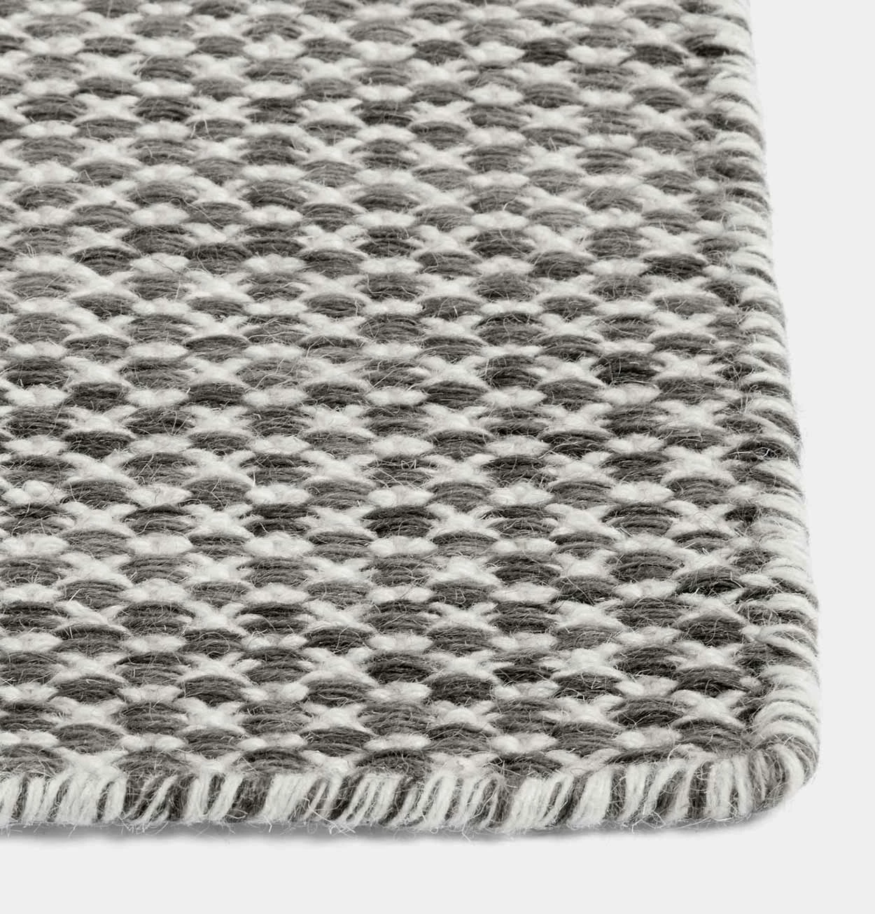 HAY’s Moiré kelim is hand-woven in India from different combinations of coloured wool and features serged edges. Available in four rectangular sizes in a variety of colour combinations.