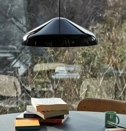 he pendantโs shades are crafted from steel with a high-gloss finish and are available in different sizes and colours. Their functionality and the deliberate simplicity of the design make them suitable for a wide range of spaces and uses in domestic and corporate environments.