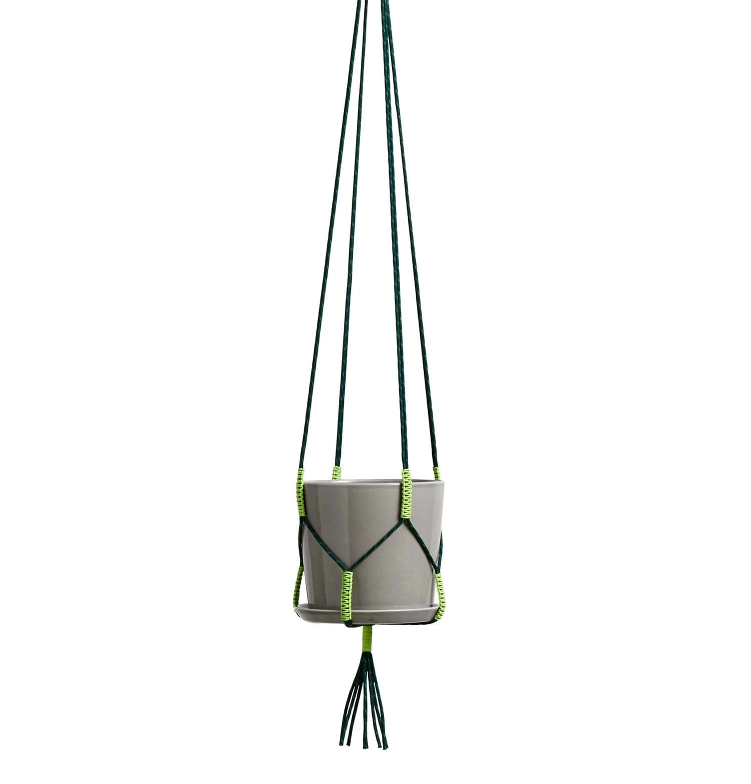 Designed by the Danish design brand Phanta, the Phanta Plant Hanger is a colourful β70s-inspired macrame plant holder that can be suspended from a ceiling or shelf. Its flexible design can hold a wide variety of flowerpots, baskets and containers, offering an original and decorative solution for displaying plants and other ornaments. Handmade from recycled polyester, it is available in different colour options.