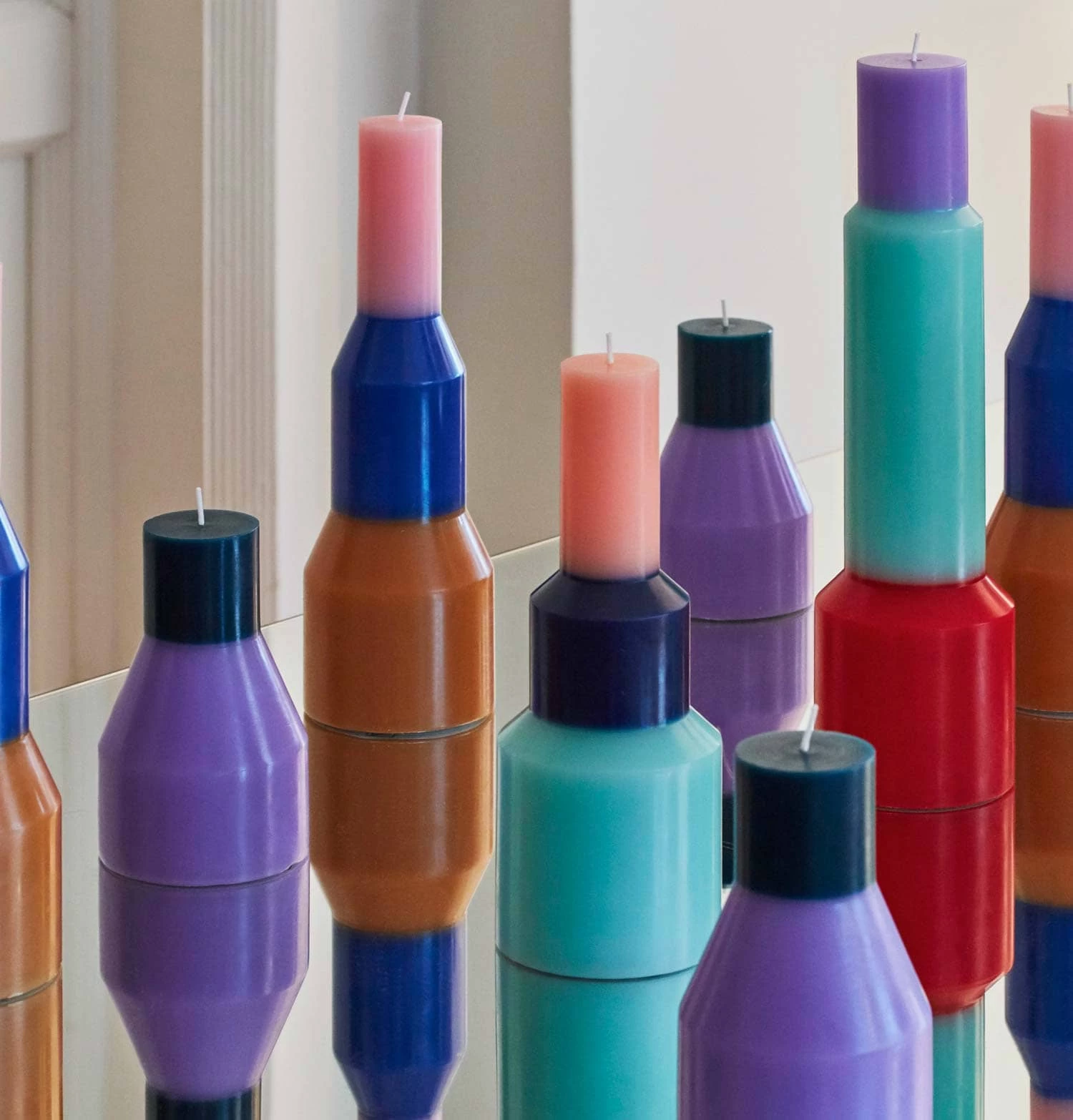 Lex Pott uses striking colour combinations and staggered dimensions to create a series of candles with a distinctive and playful design. Available in a number of assorted colours and designs.