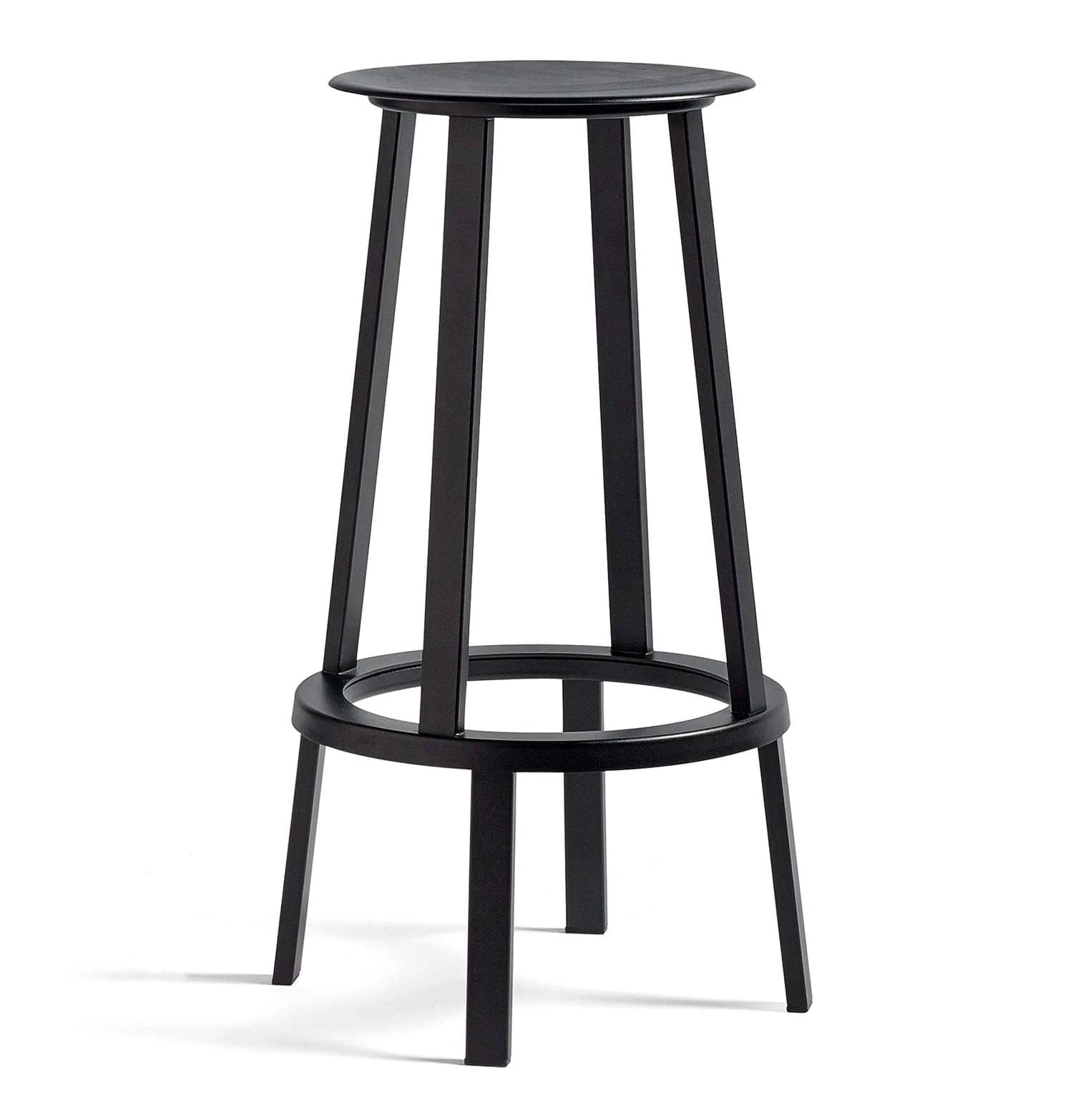 HAY’s Revolver Bar Stool is positioned on a bearing mechanism that enables the seat and foot ring to rotate 360 degrees. The slim, slightly dished seat features curved edges for additional comfort, while the footrest provides support and the weighty base creates total stability. The rotating feature, while altering appearance, also lends a sense of the play to this functional design. Available in two heights and a choice of coatings, its versatile presence makes it suitable for a wide range of public and residential environments.