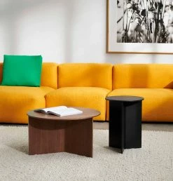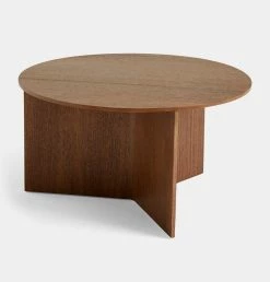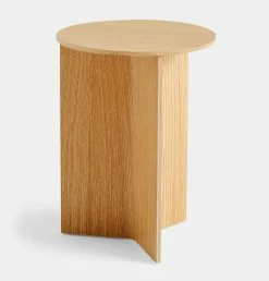 HAY’s Slit Table is a geometric wooden table inspired by paper origami techniques. The slim frame appears folded beneath the tabletop, creating a simple yet sculptural form that is reminiscent of traditional Japanese paper art. The Slit Table is available in different shapes and sizes, and is offered in various wood types and finishes. Compact and versatile, it can be used on its own or arranged in clusters in diverse private or public settings.