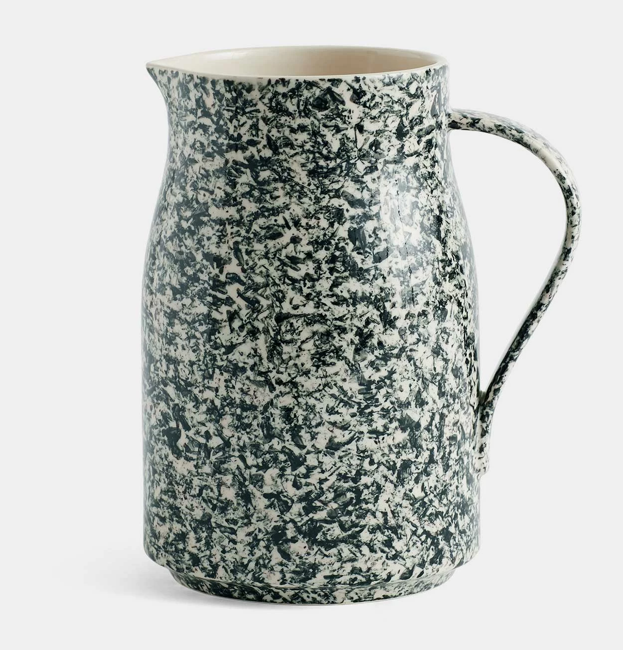 Part of a design collaboration between HAY and artist Laila Gohar that celebrates the joy of meeting family and friends over a good meal, the Sobremesa Jug is a beautiful jug designed to add a decorative edge to any table setting. Hand-painted in stoneware with a monochrome pattern that gives each jug a unique quality, it can also be used as a vase or for storing kitchen utensils.