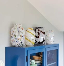Handmade using a special glassblowing technique that involves multiple layers of coloured glass dots, the Splash Vase features a unique swirled pattern. Available in different designs and sizes, the vases can be used both for displaying flowers and as decorative objects.
