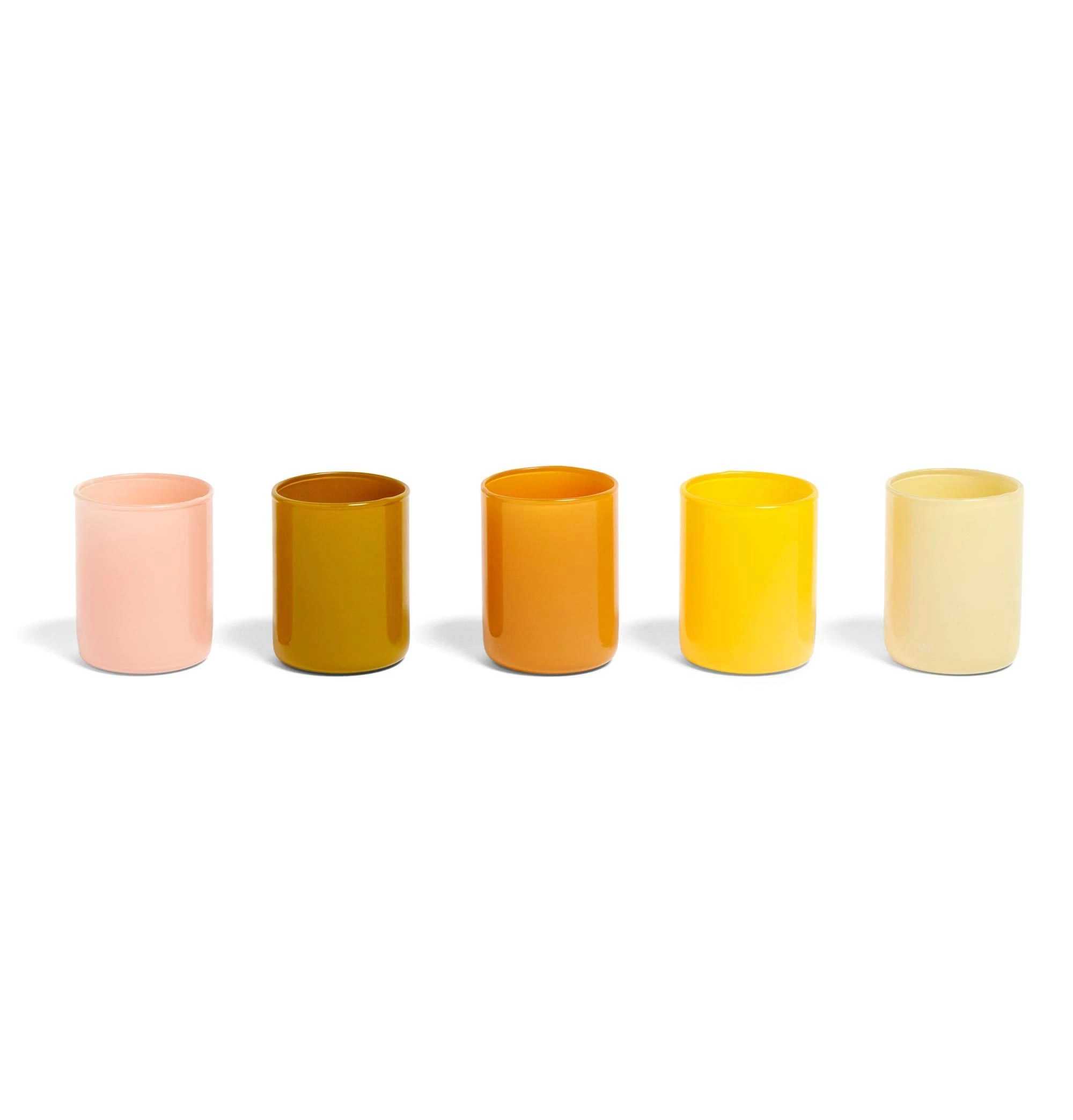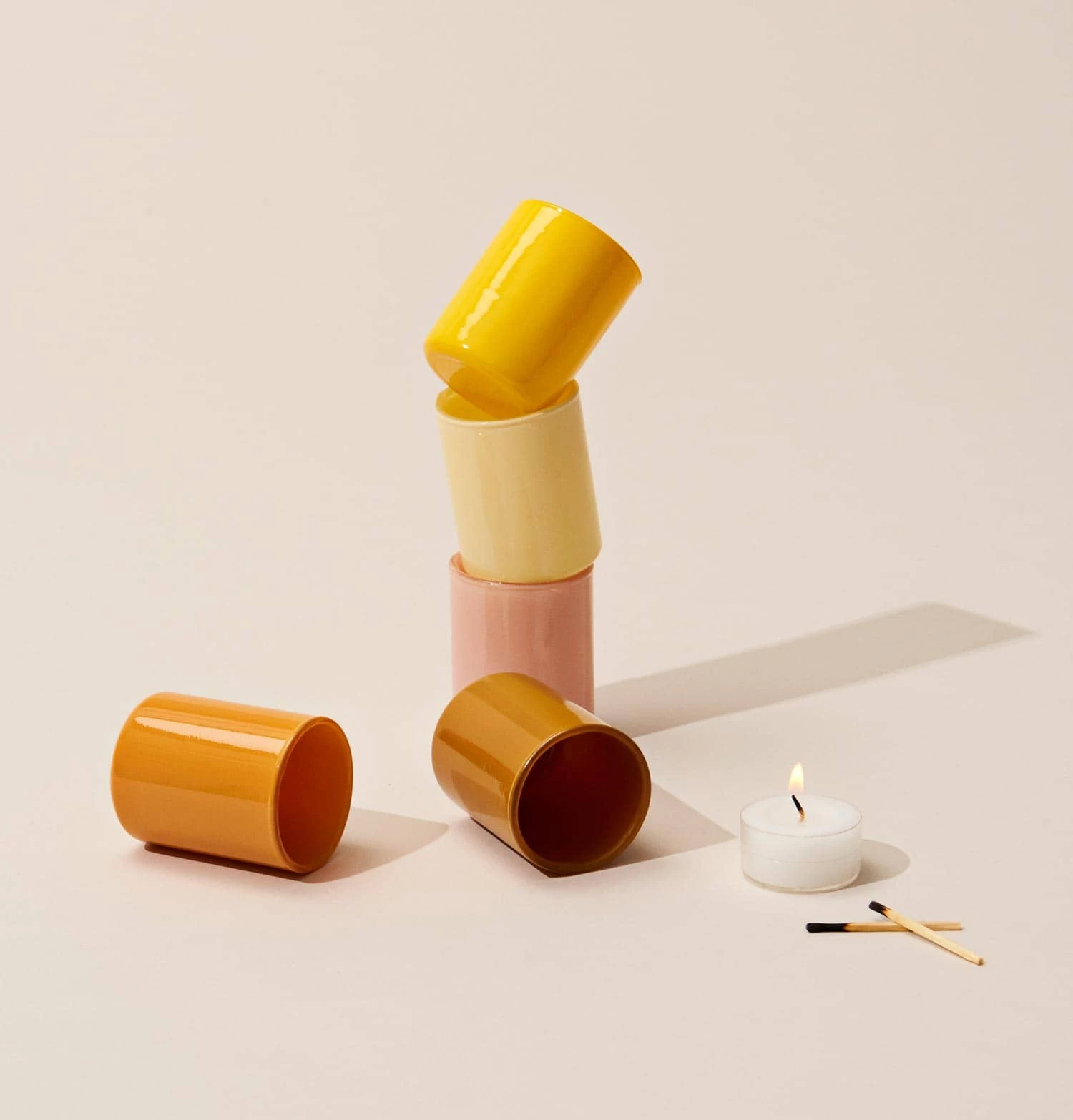 HAY’s Spot Votive is a set of glass tealight holders in graduating shades of colour.