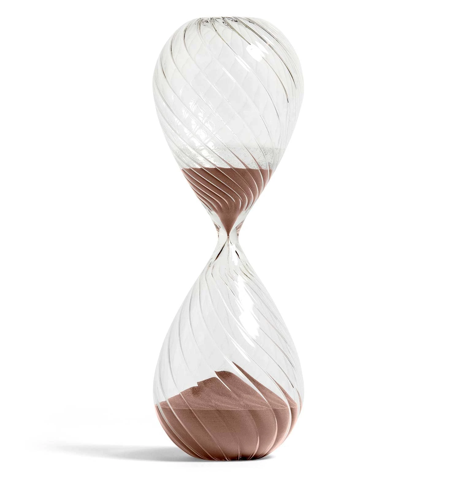 With its organic, soft shape and complementary combinations in clear and coloured glass with fine sand, HAY’s Time hourglass offers a contemporary twist on the classic hourglass timer.