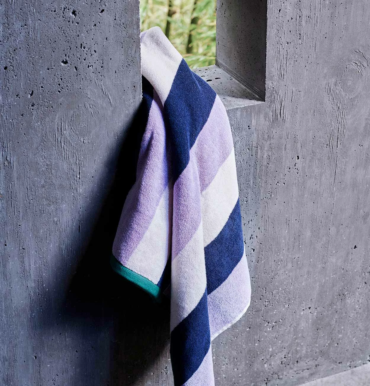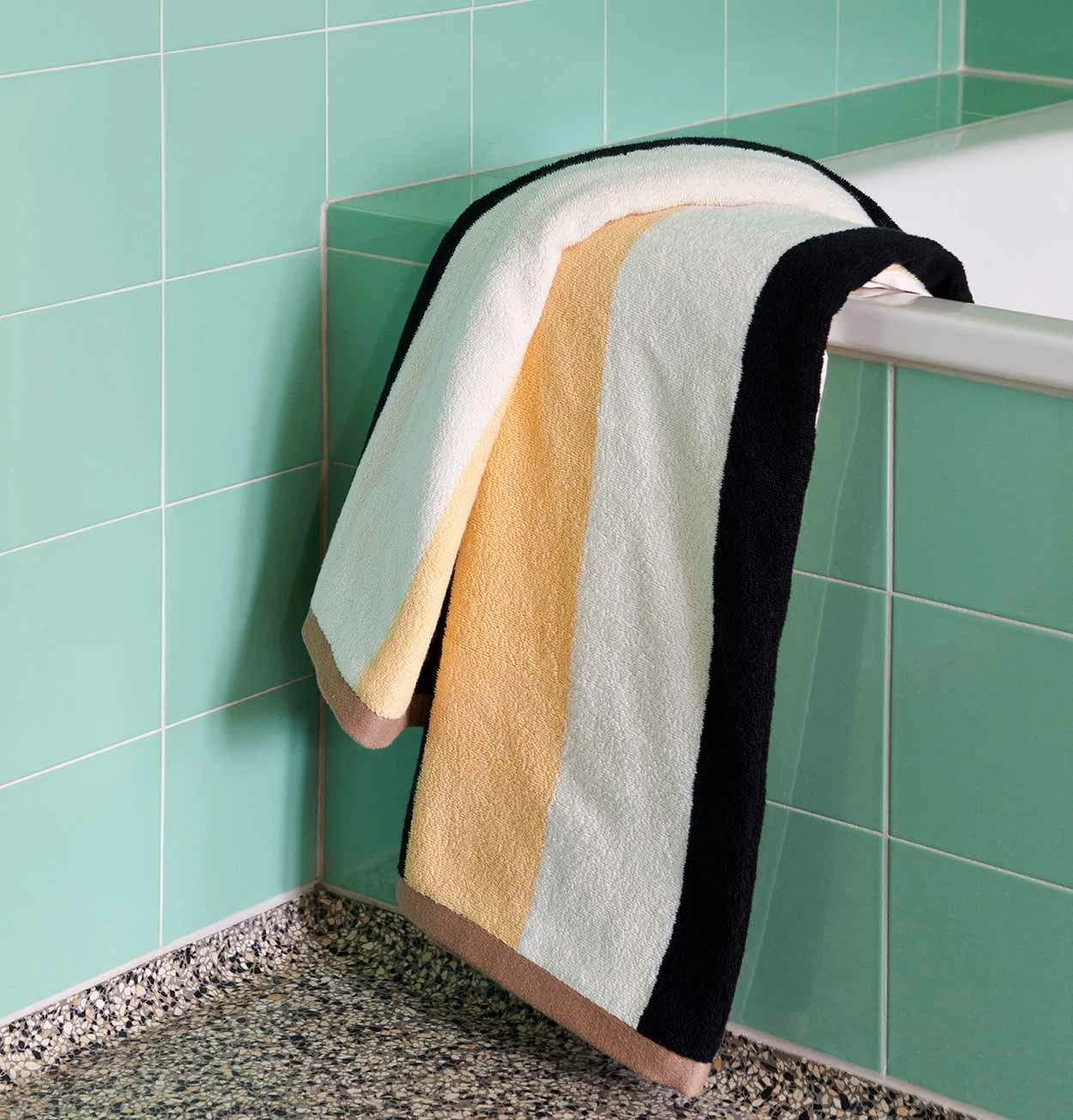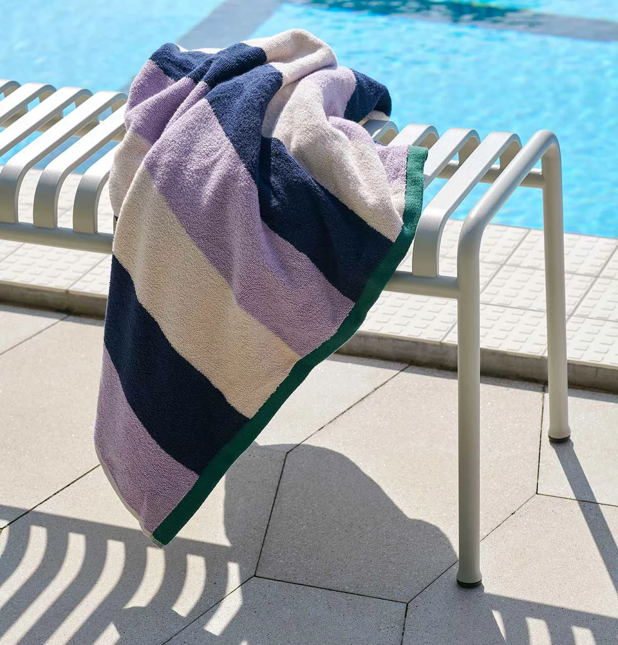 Featuring a tricoloured striped design in soft OEKO-TEX® cotton, the Trio Bath Sheet is a colourful and contemporary essential for the beach, pool or bathroom. Subtle contrast details at the ends complete the palette and add an original HAY edge. Available in different colour combinations.