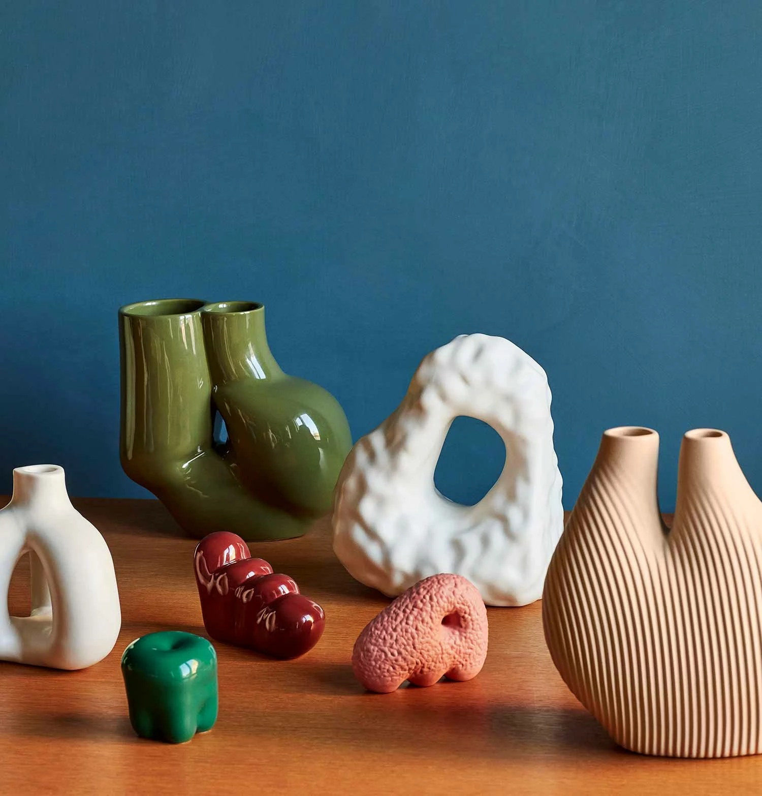 Inspired by the space where digital and physical forms meet, Wang & SΓΆderstrΓΆmβs Sculptures are unique sculptural objects that serve as miniature pieces of art. The organically shaped 3D models are first developed in the designersβ studio, before the items are 3D printed and moulded in porcelain and stoneware at a ceramic factory. Available in different designs and colours, they are ideal for displaying individually or in clusters in many different spaces and contexts.