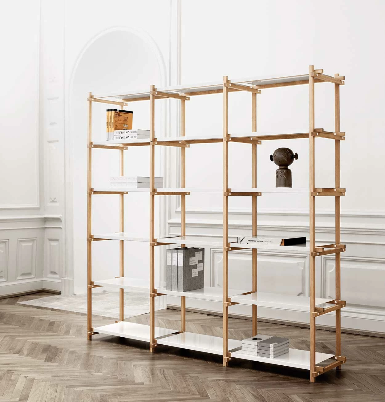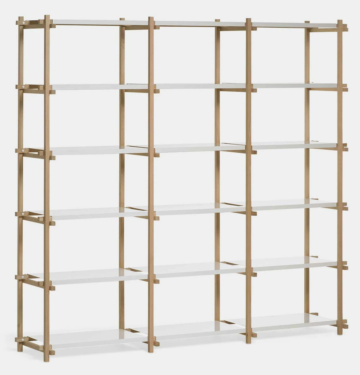 Woody was originally designed for inventory use, but after much demand this ladder-inspired shelving system was soon put into commercial production. Woodyβs beauty lies in its open simplicity and industrial expression that leaves construction parts and joint details exposed. Woody is available in several different sizes and can be used as a free-standing shelving system, against a wall or as a room divider.